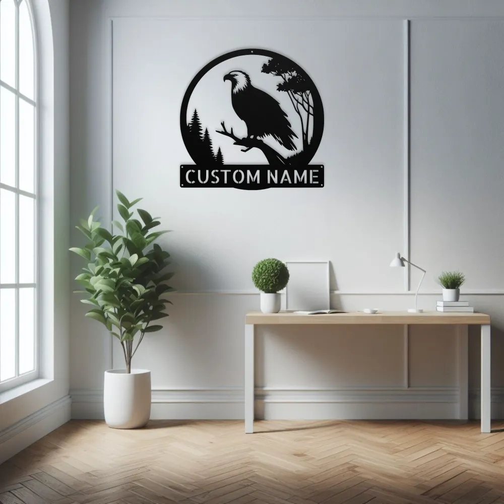 Show your patriotism with a Custom Bald Eagle Metal Sign! Personalize with a name or message for a unique, long-lasting addition to your home, office, or outdoor decor