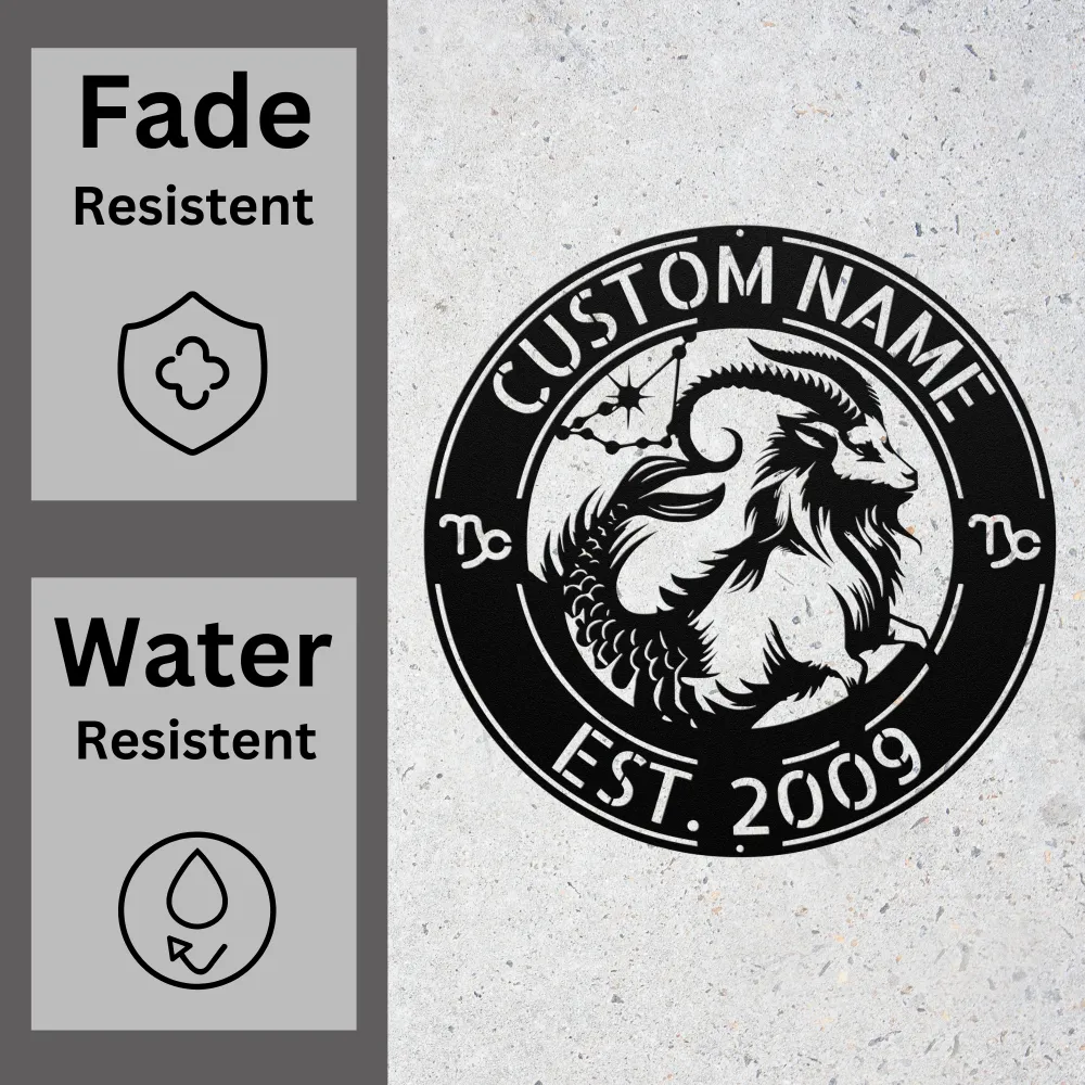 Show your Capricorn spirit with a Custom Capricorn Zodiac Metal Sign! Personalize it with your name or message for a unique, durable piece perfect for astrology lovers.