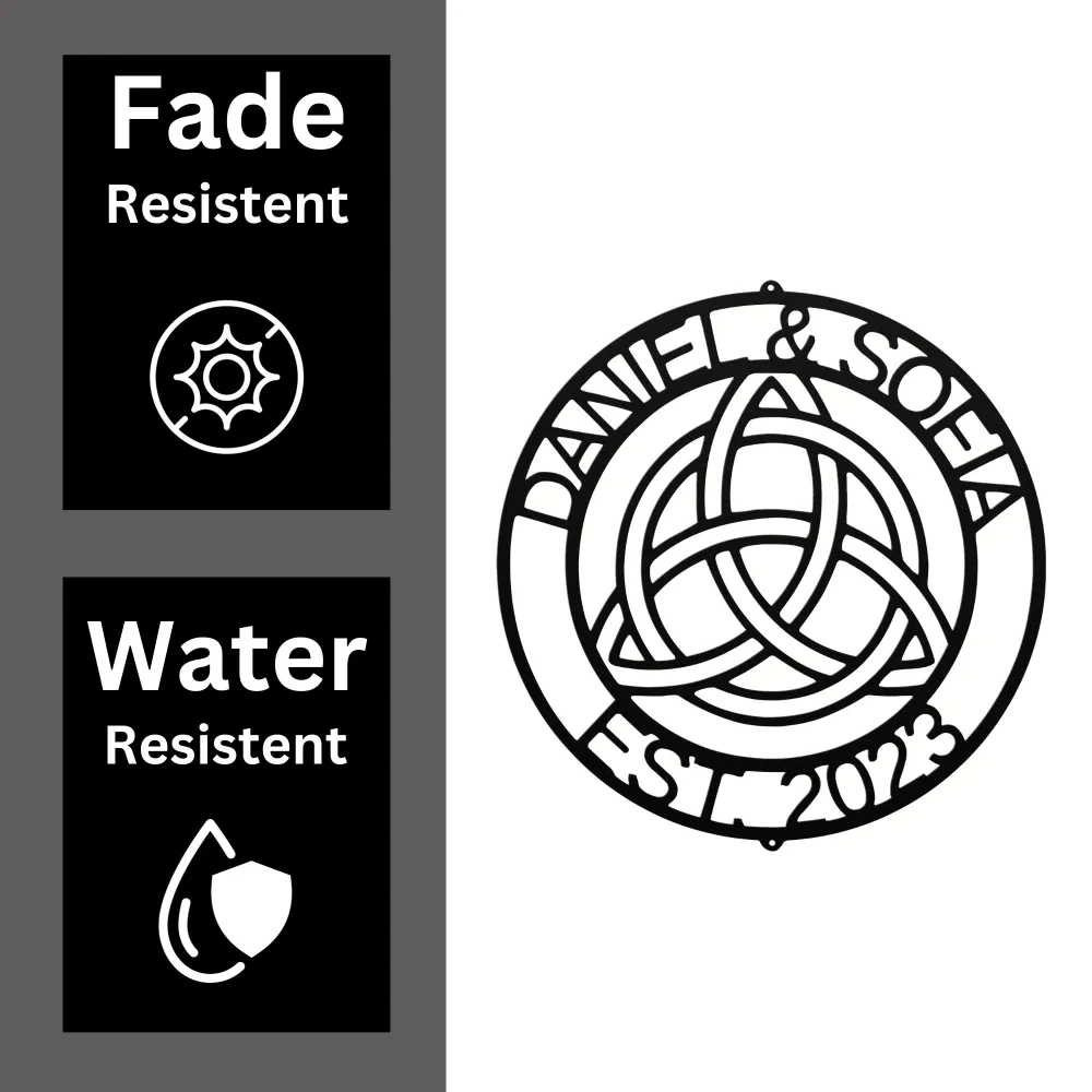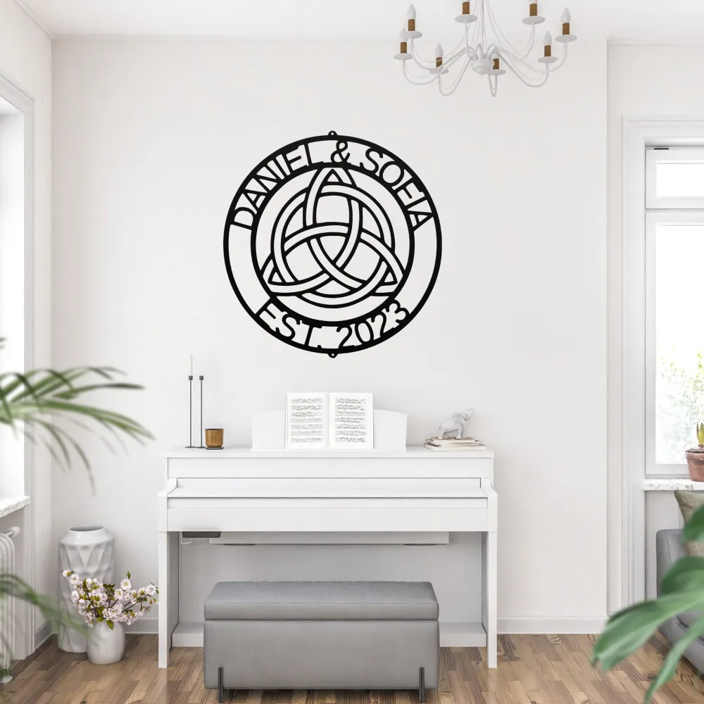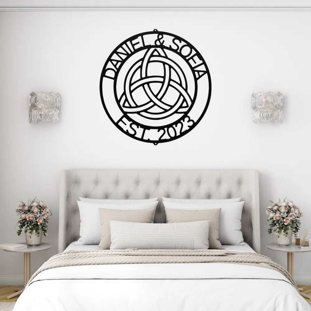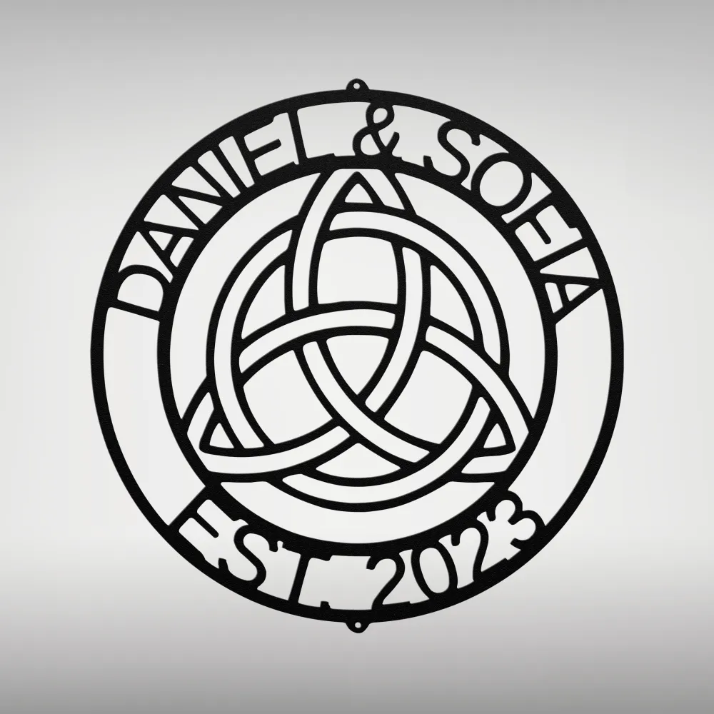 Custom Celtic Metal Sign features elegant knot patterns symbolizing unity. A striking Celtic knot wall decor piece for any modern or rustic home.
