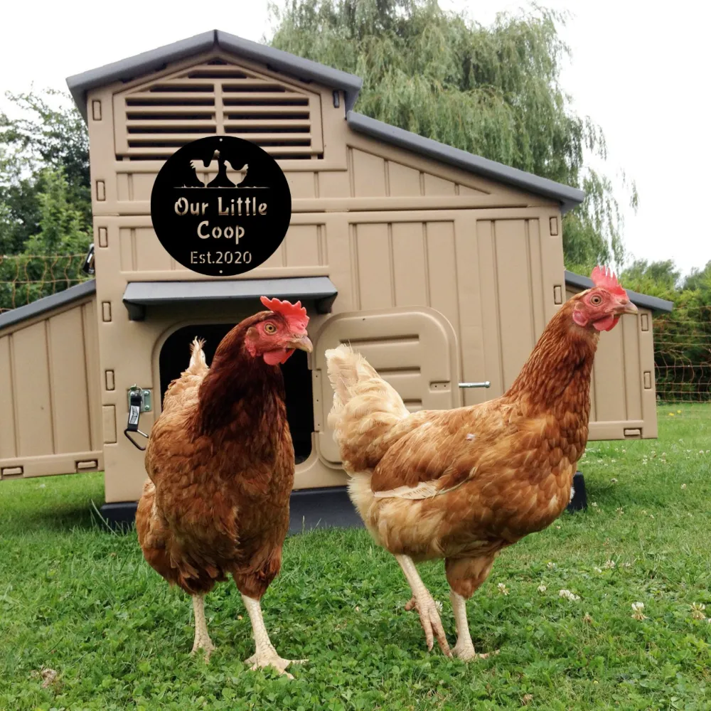 Custom Chicken Coop Sign designed for backyard farms and homesteads. Handcrafted metal art that personalizes your coop with rustic farmhouse charm.
