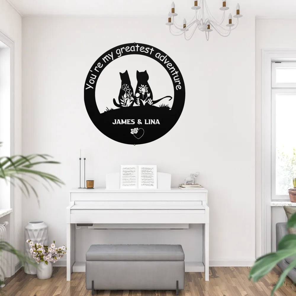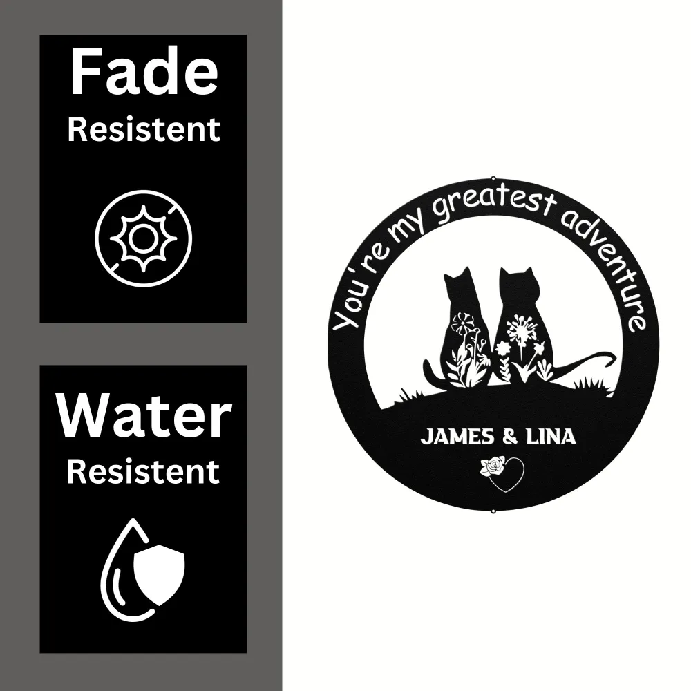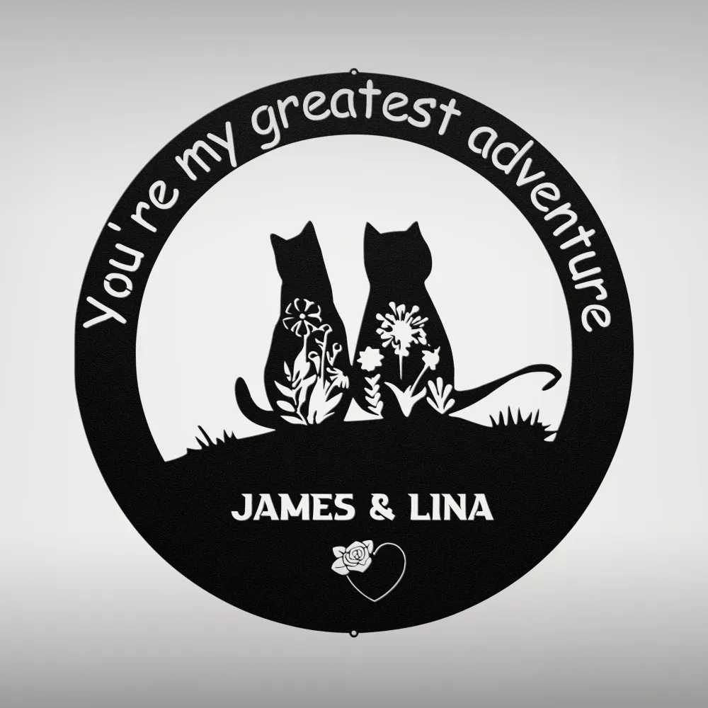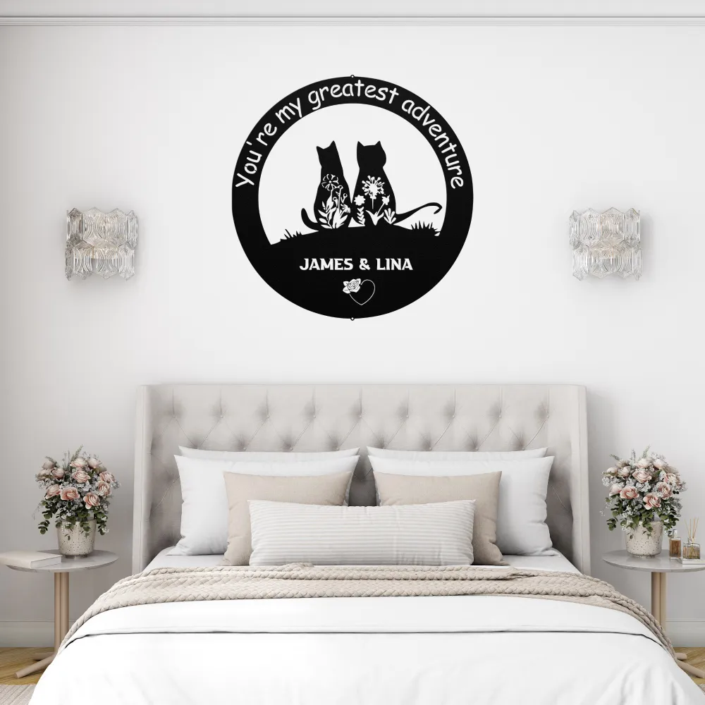 The Custom Couple Cats Metal Sign is a wonderful way to express your love for your partner and your pets. Order today to create a personalized, charming sign that captures the heart of your feline friendship!