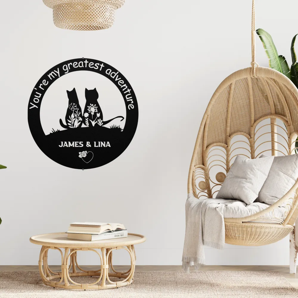 Custom Couple Cats Metal Sign brings warmth and cuteness to your home. Perfect for cat owners who love unique, handcrafted metal art.