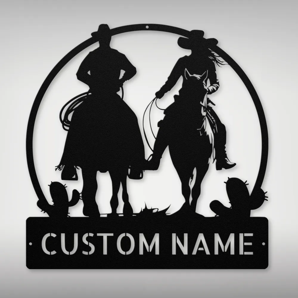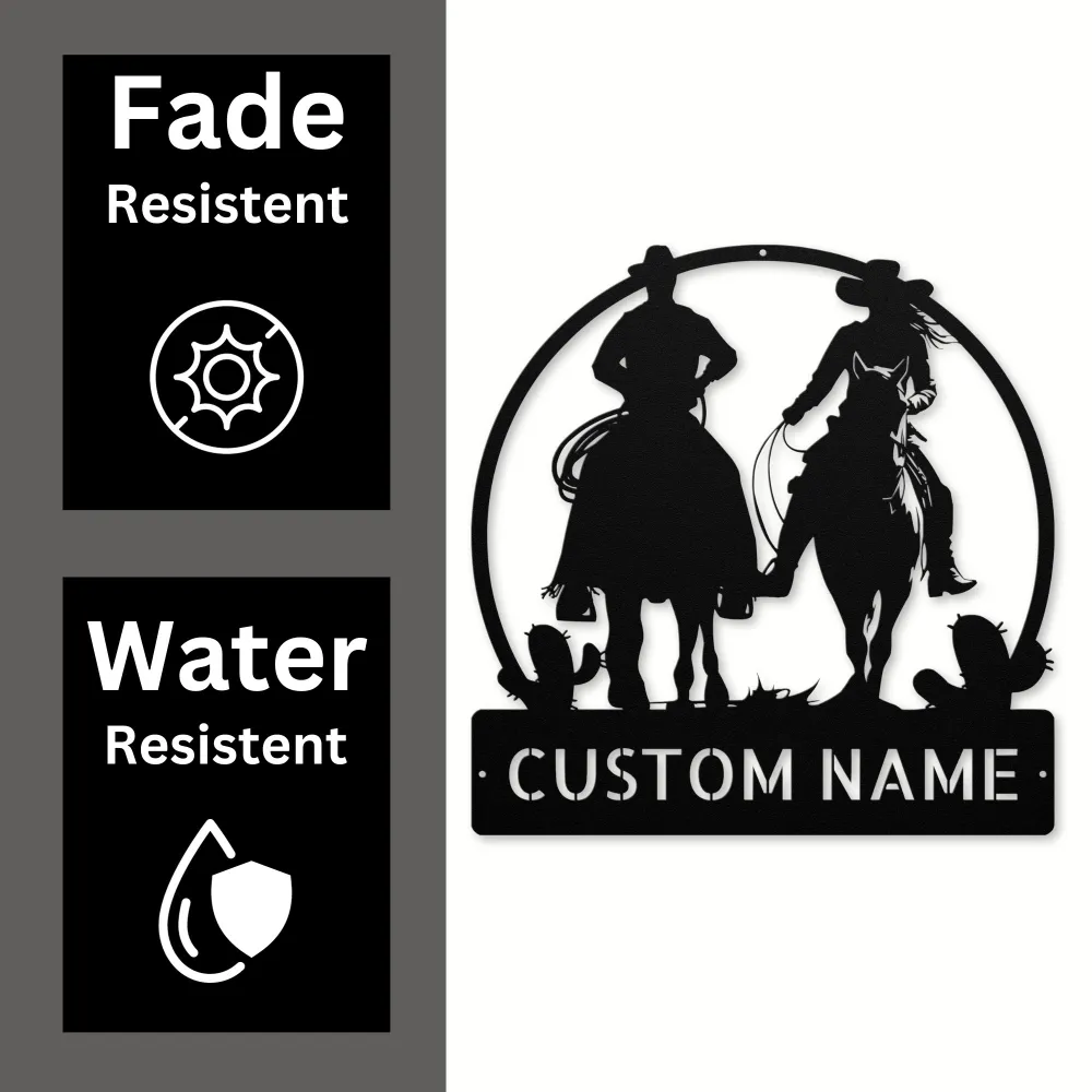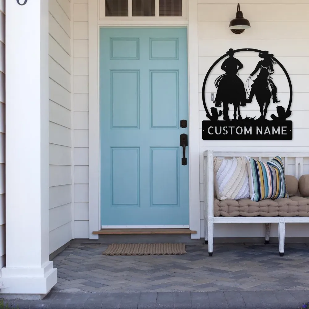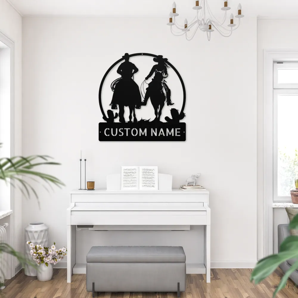 Custom Couple Riding Horse Metal Sign – Custom, durable, and weather-resistant. Perfect for couples, horse lovers, and rustic home decor.