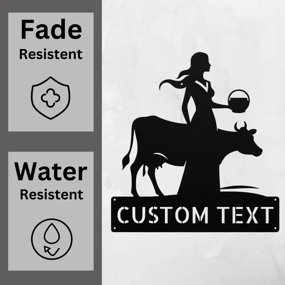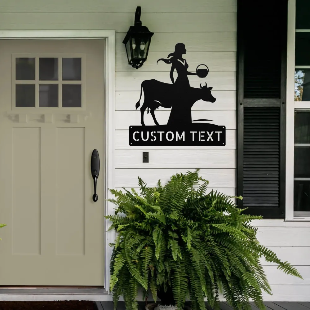 Create a unique touch with a Custom Cow with Girl Metal Sign 🐄👩🌾. Personalized with names or messages, durable, weatherproof, and perfect for outdoor decoration.