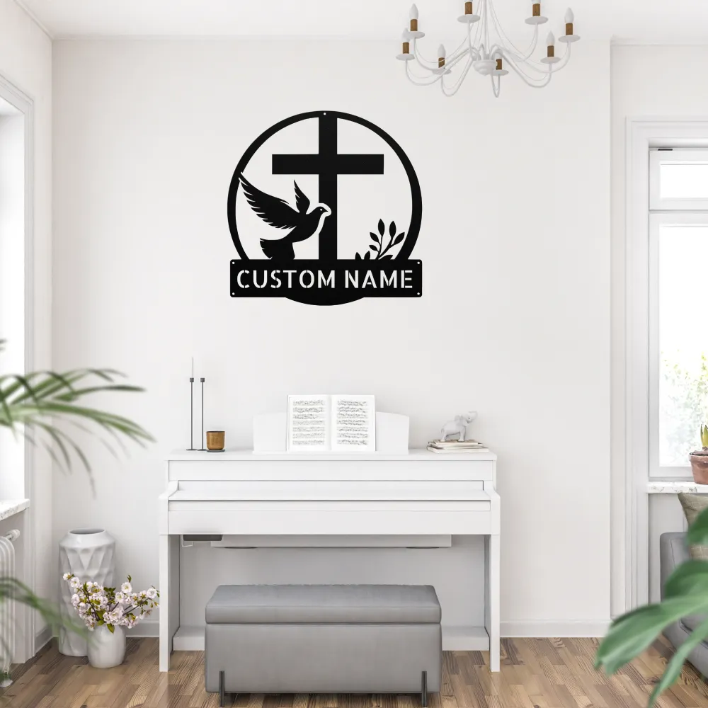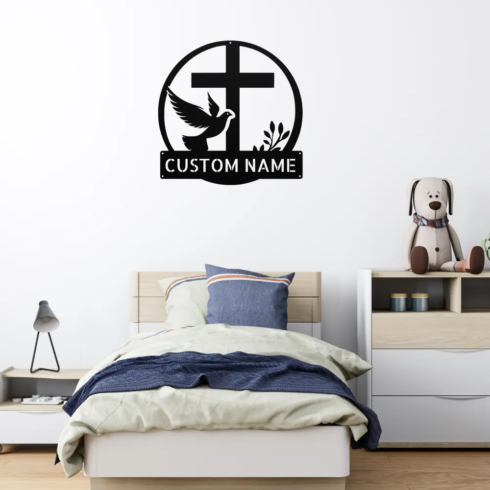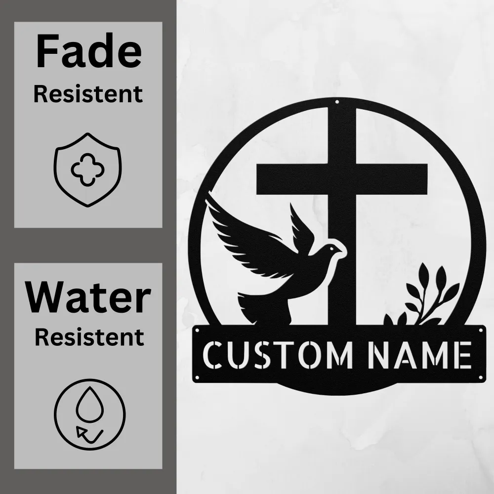 Custom Dove Cross Metal Sign blends faith and elegance. Perfect personalized Christian décor for homes, churches, and spiritual gifts.