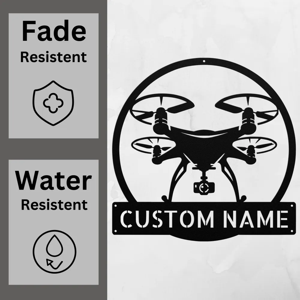 Custom Drone Metal Sign, Personalize with your name or business! Perfect for drone pilots, enthusiasts, or decor. Durable 16-gauge metal with powder coating.