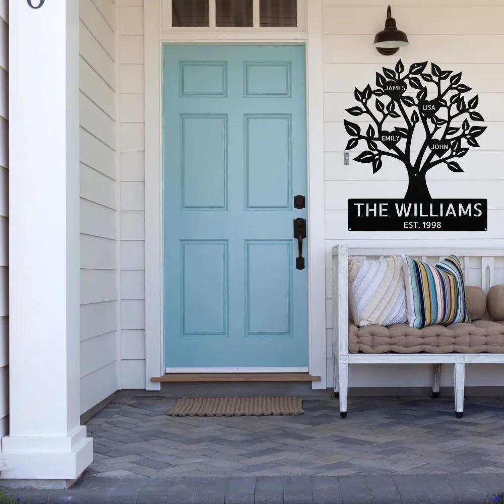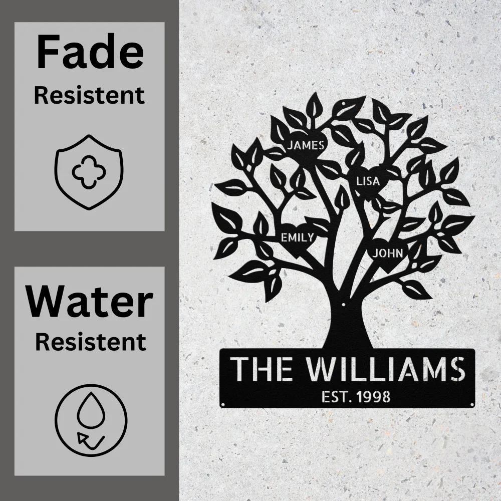 Crafted from premium 16-gauge metal, this sign is built to withstand the test of time. The weather-resistant powder coating ensures it stays rust-free, fade-resistant, and durable, making it ideal for both indoor and outdoor use. The intricate tree design symbolizes growth, resilience, and the strong bond of family, making it an eye-catching centerpiece in any setting.