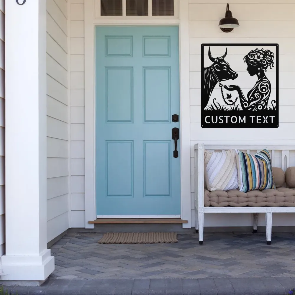 Add a unique touch to your home or garden with the Custom Floral Cow Woman Metal Sign. This beautiful design blends rustic charm with a feminine touch, featuring a cow adorned with floral elements and a graceful woman. Itβs perfect for adding personality to your farmhouse, ranch, or country-style decor. Customizable with names, dates, or messages, this sign is a wonderful way to celebrate your love for animals and nature.