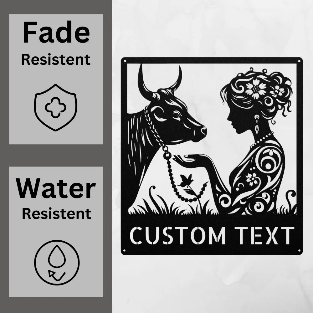 Custom Floral Cow Woman Metal Sign πΈππ©βπΎ