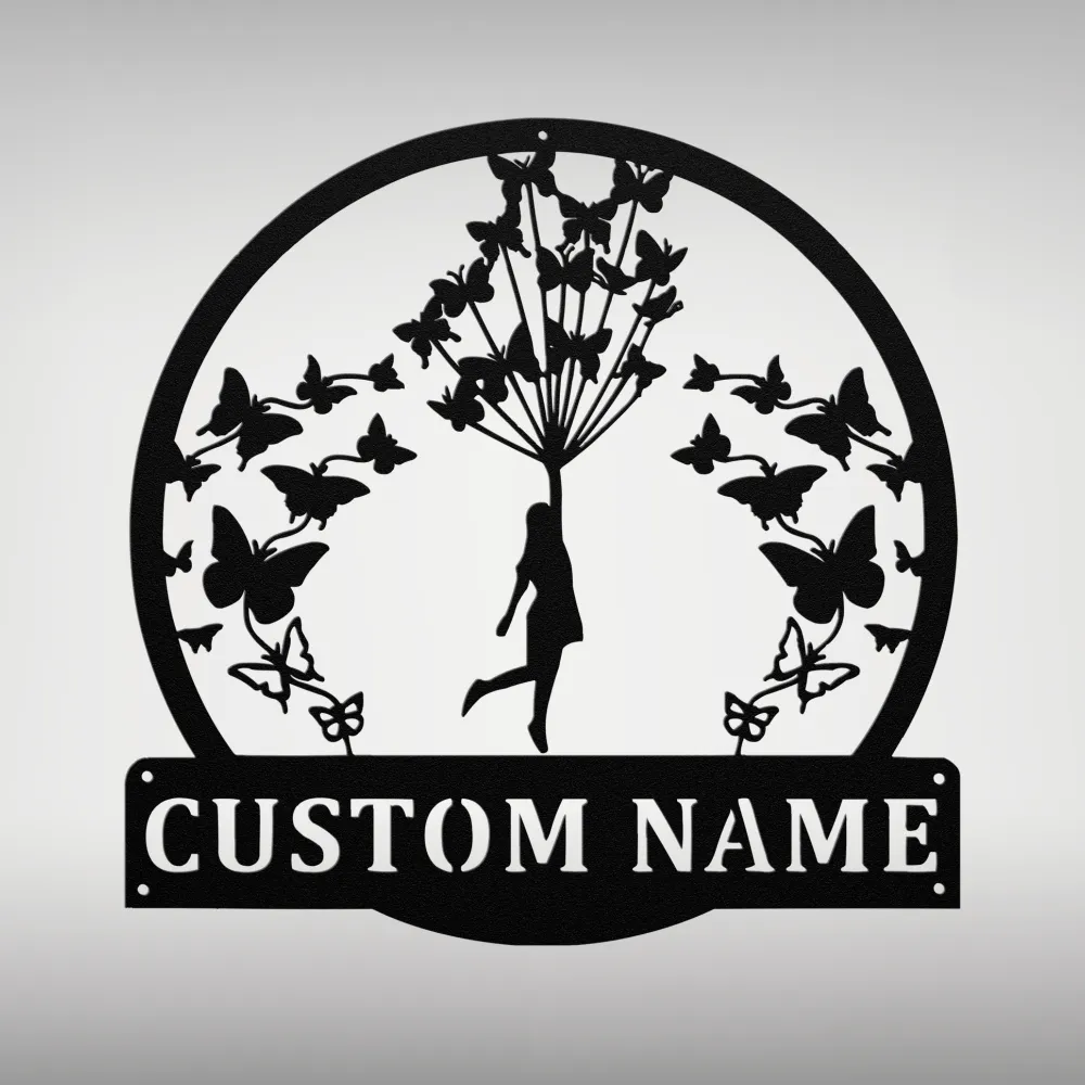 Custom Flying Butterflies Metal Sign adds natural beauty to any space. Elegant metal wall art perfect for homes, gardens, or butterfly lovers.