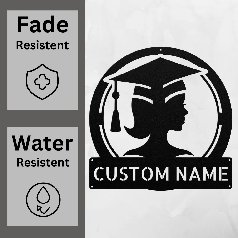 Custom Graduation Cap Metal Sign celebrates academic success in style. Perfect personalized gift for graduates, schools, or family keepsakes.