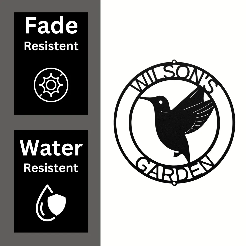 Custom Hummingbird Metal Sign adds beauty and grace to your garden or patio. Personalized and durable metal art for any outdoor space.