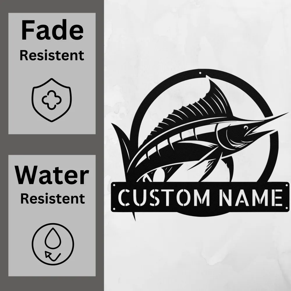Showcase your love for fishing with a Custom Marlin Fish Metal Sign – durable 16-gauge metal, customizable design, powder-coated finish, and multiple sizes/colors.