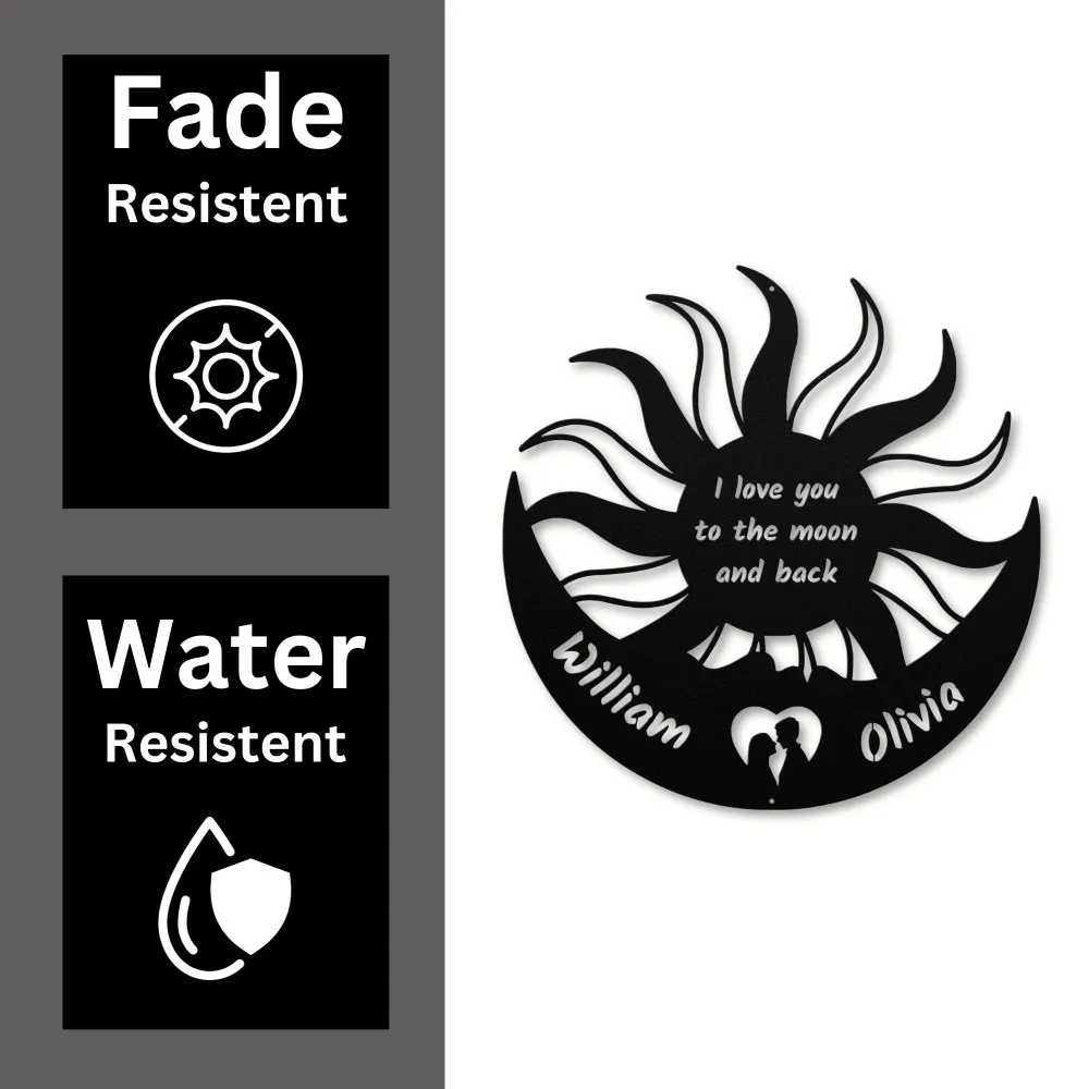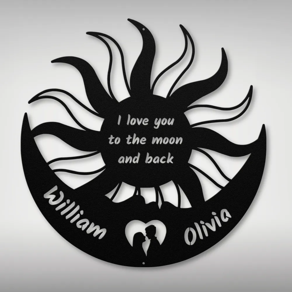 Custom Moon Sun Couple Metal Sign symbolizes eternal love and balance. Perfect personalized gift for couples, weddings, or anniversaries.