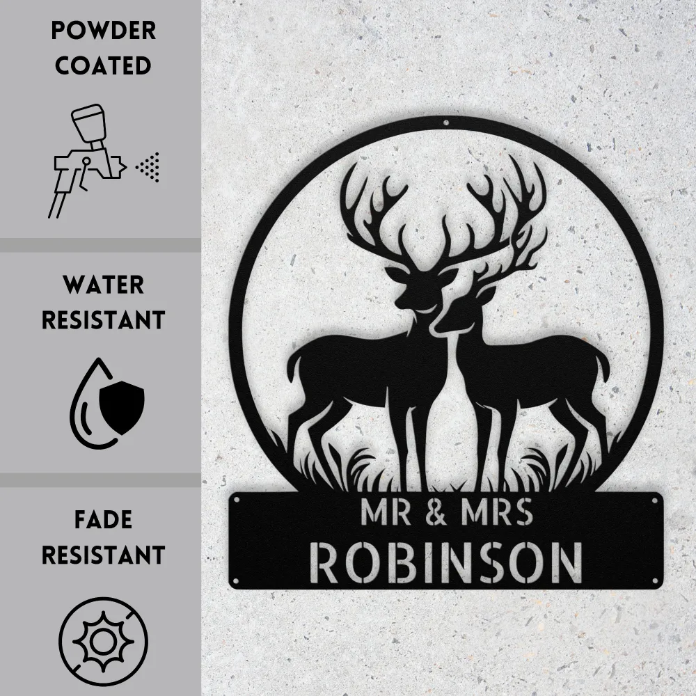 Order your Custom Mr Mrs Deer Metal Sign today and celebrate love with nature’s beauty!