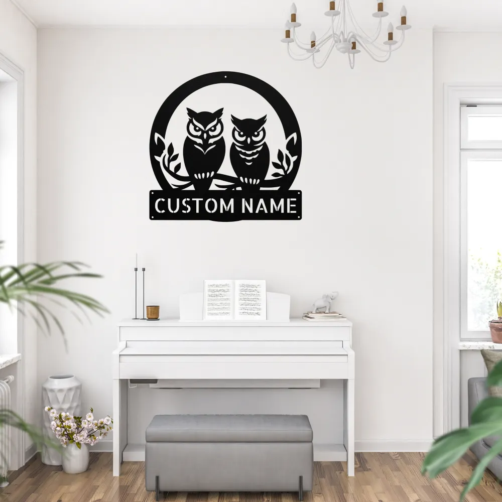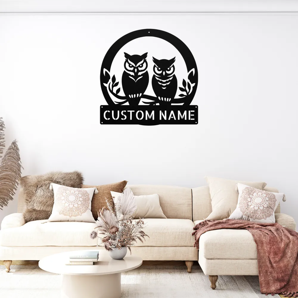 Custom Owl Couple Metal Sign symbolizes love and wisdom. A romantic metal artwork perfect for couples, weddings, or anniversaries.