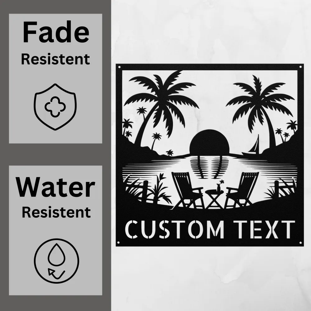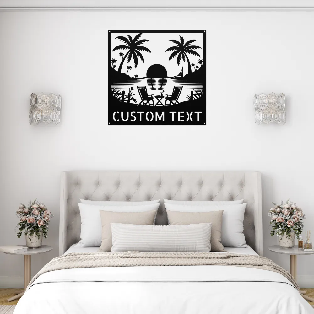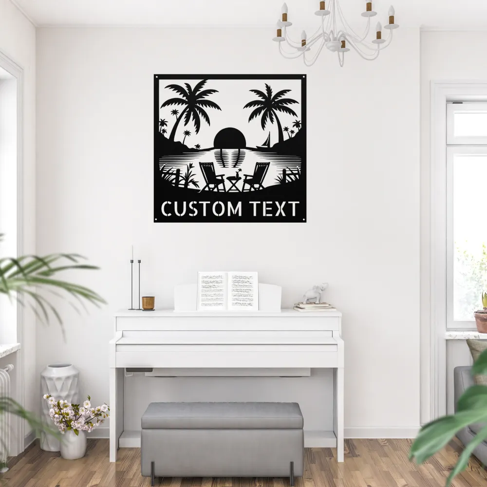 Custom Paradise Scene Metal Sign adds a coastal vibe to any space. Handcrafted metal wall art ideal for tropical homes, patios, or vacation spots.