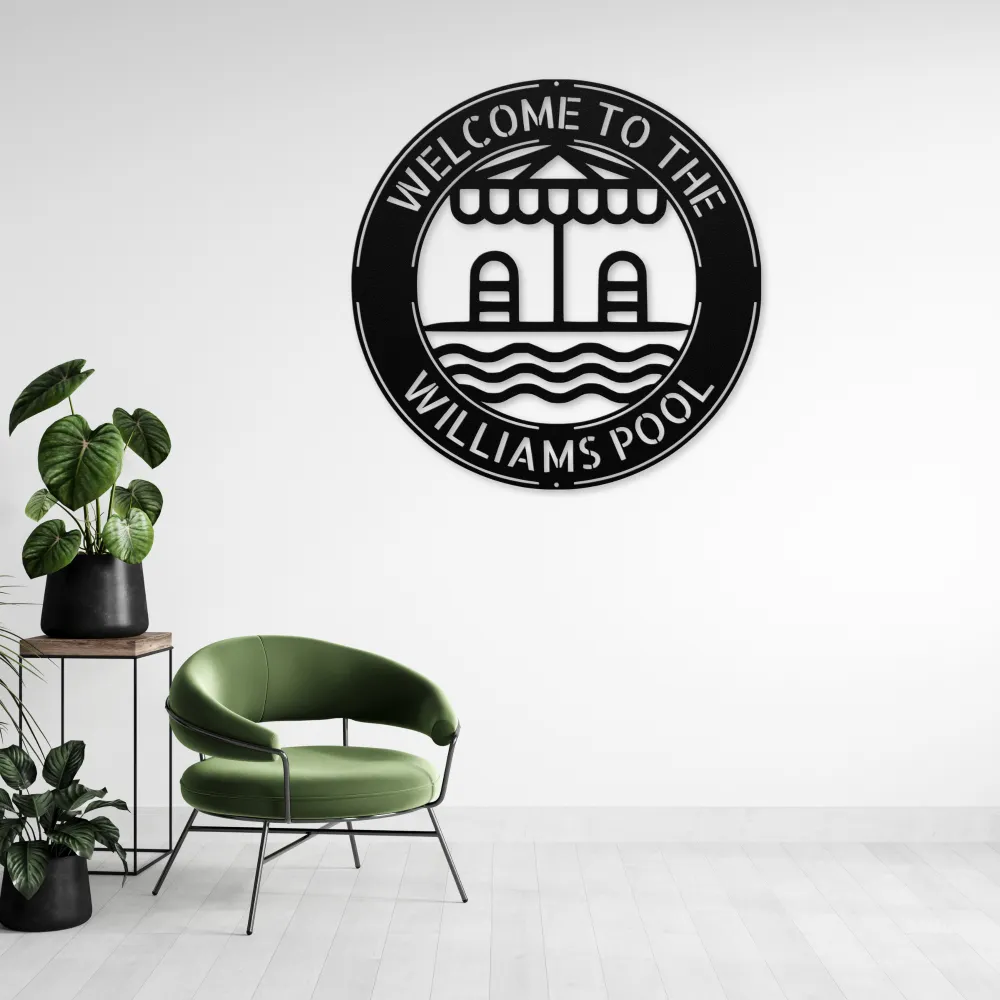 Custom Poolside Metal Sign 🏊♂️ Personalize with your name or message. Made from durable 16 gauge metal with a powder-coated finish. Perfect for poolside décor!