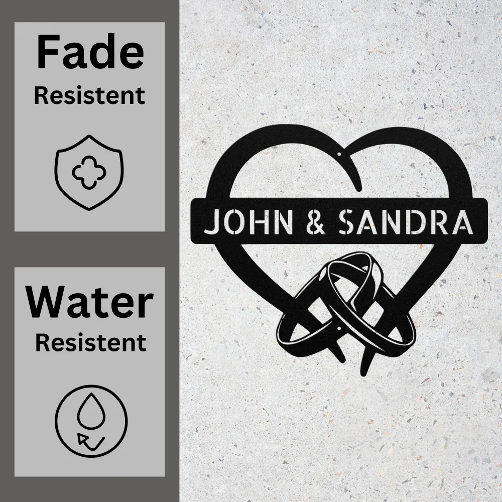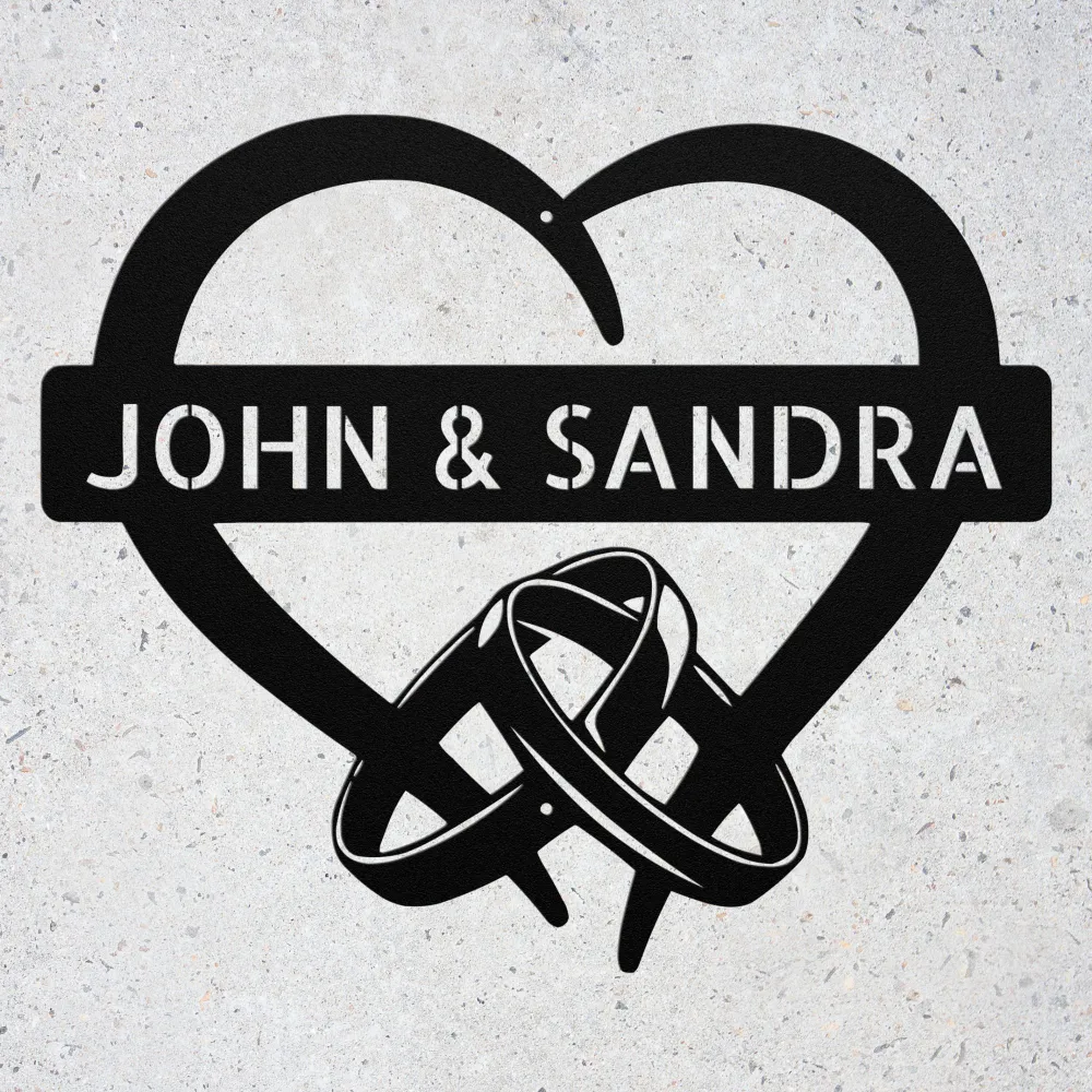 Celebrate love with a Custom Rings in Heart Metal Sign! Personalized and durable, perfect for wedding, anniversary, or romantic home decor.