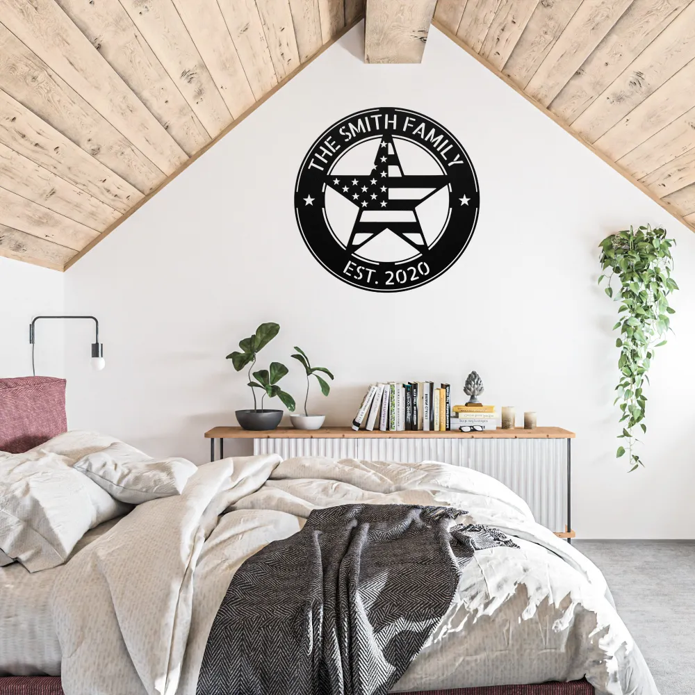 The Custom US Star Last Name Metal Sign is an ideal way to celebrate your family’s pride and patriotism. Order today to create a personalized piece that adds meaning and beauty to your home or office!