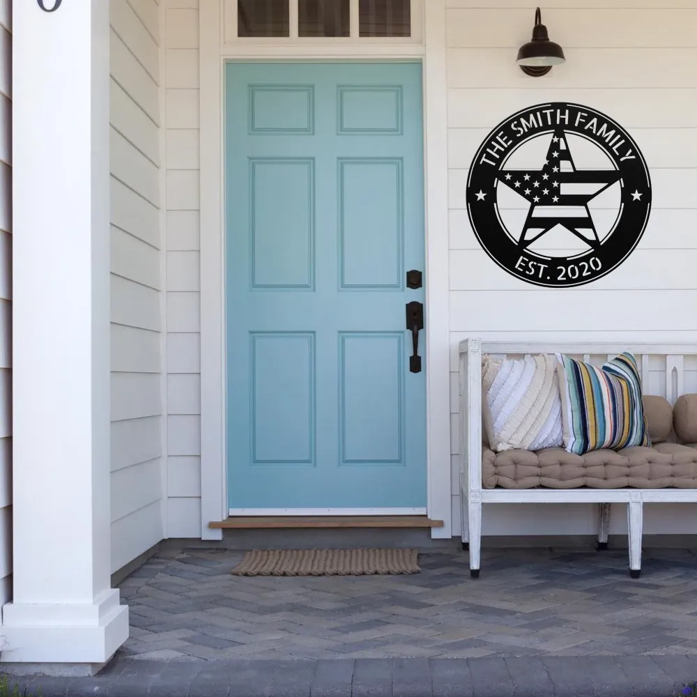 Show your pride for the USA and your family with our Custom US Star Last Name Metal Sign. Featuring a striking US star design combined with your last name, this sign is a perfect tribute to both patriotism and family unity. Made from premium 16-gauge metal, it’s built to last with a powder-coated finish that resists rust, fading, and scratches. Personalize the sign with your last name or any message to make it truly unique for your home or office.