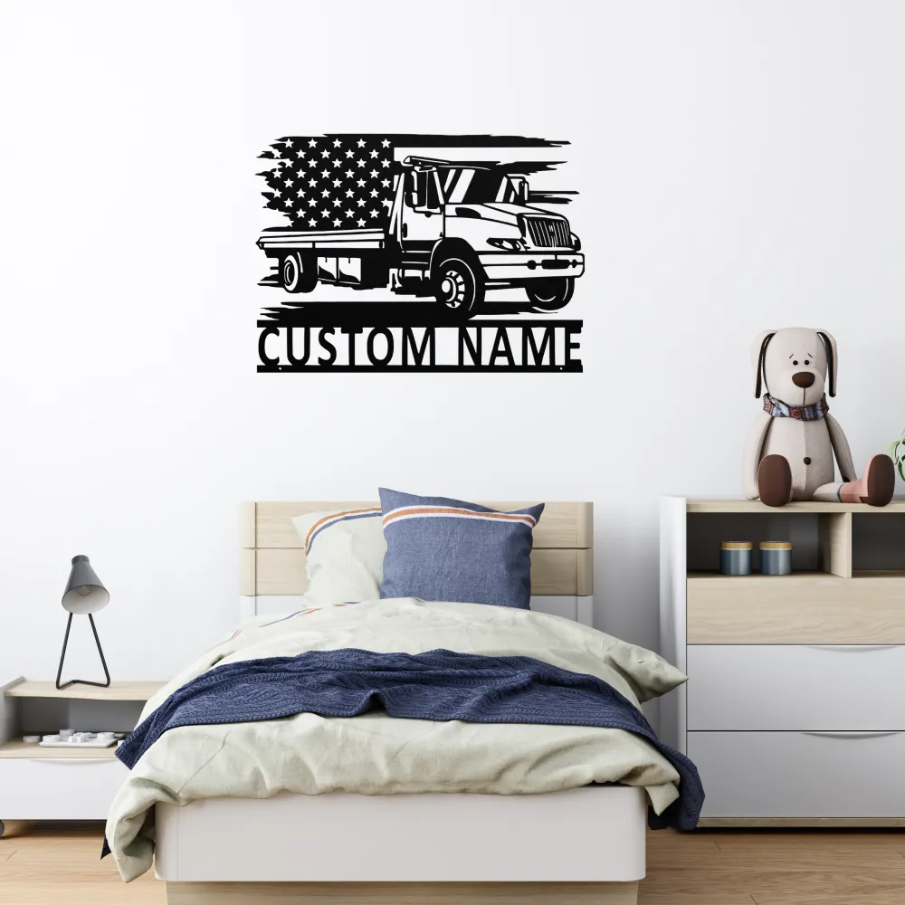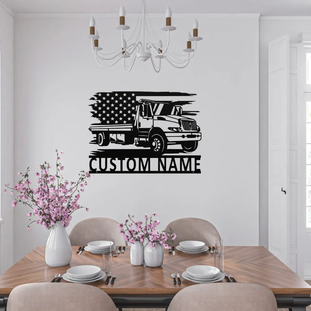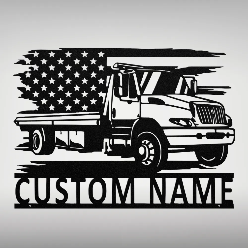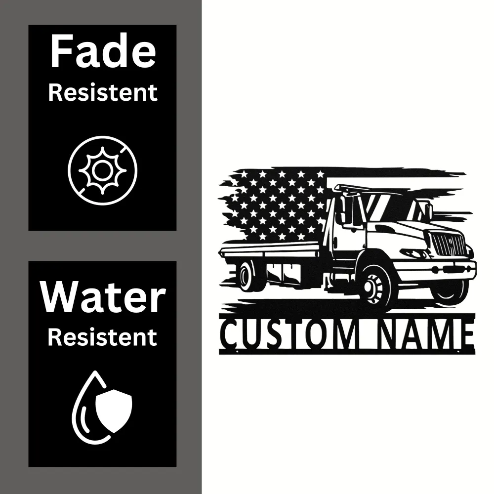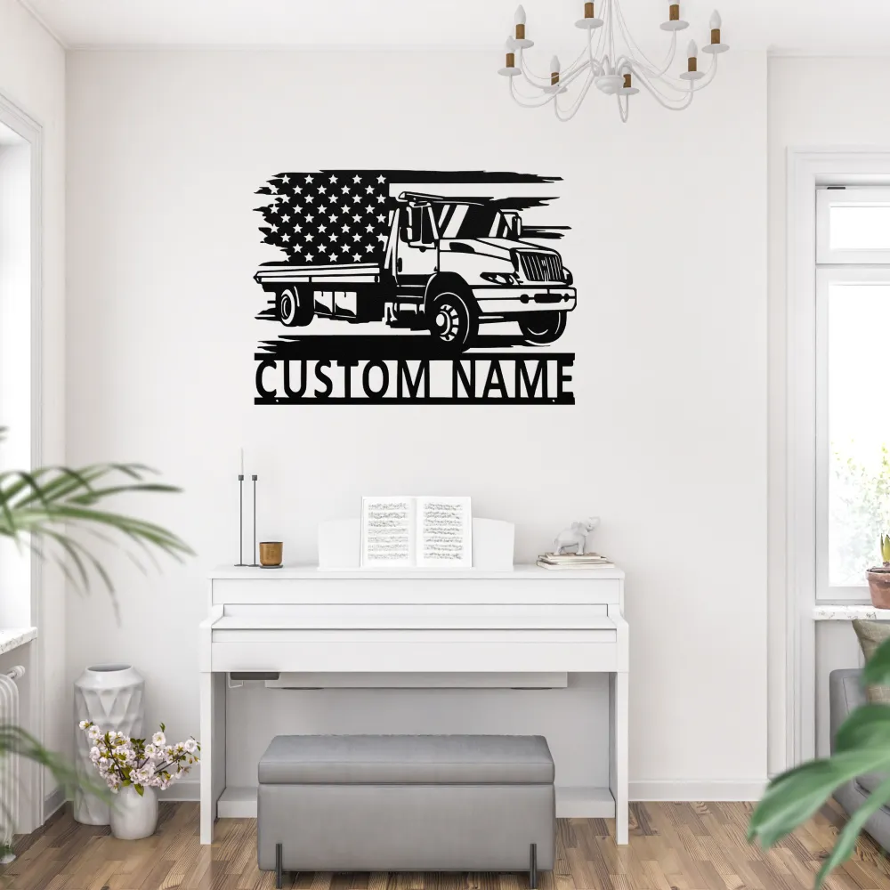 Custom US Tow Truck Metal Sign makes a bold gift for truckers. Crafted metal wall art for hauling pros and collectors.