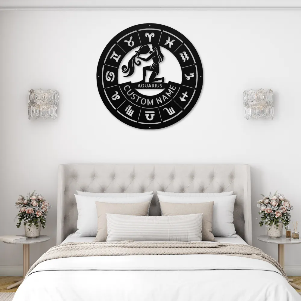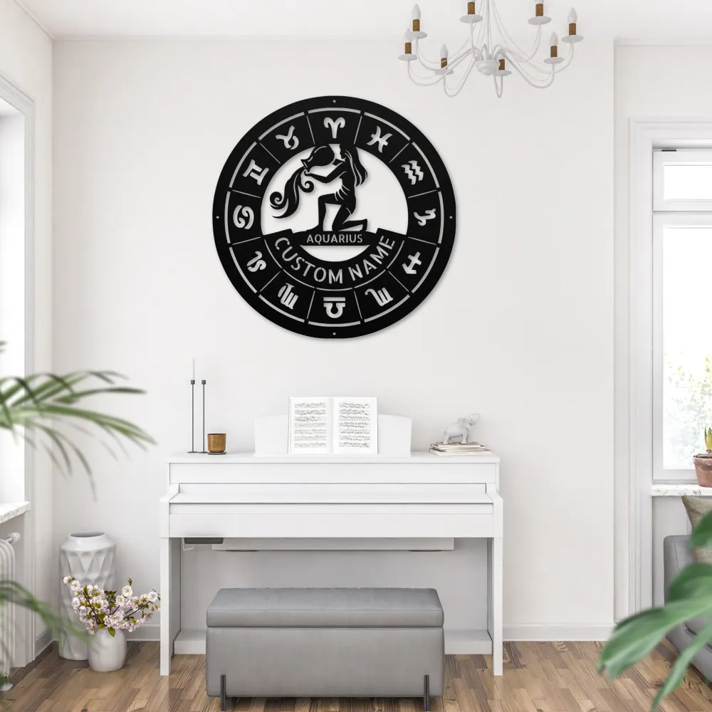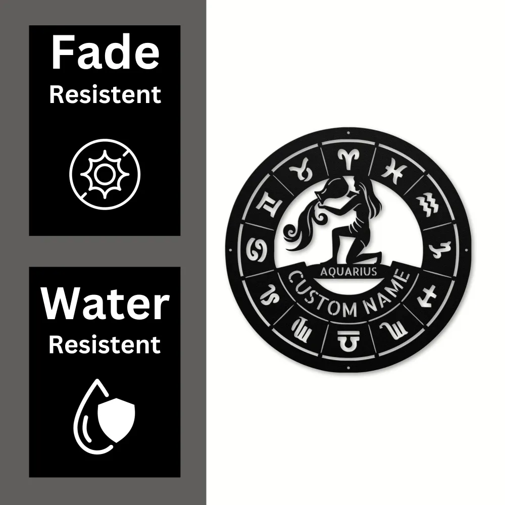 Celebrate your Aquarius zodiac sign with a Personalized Aquarius Metal Sign – durable 16-gauge metal, customizable design, powder-coated finish, and various sizes/colors.