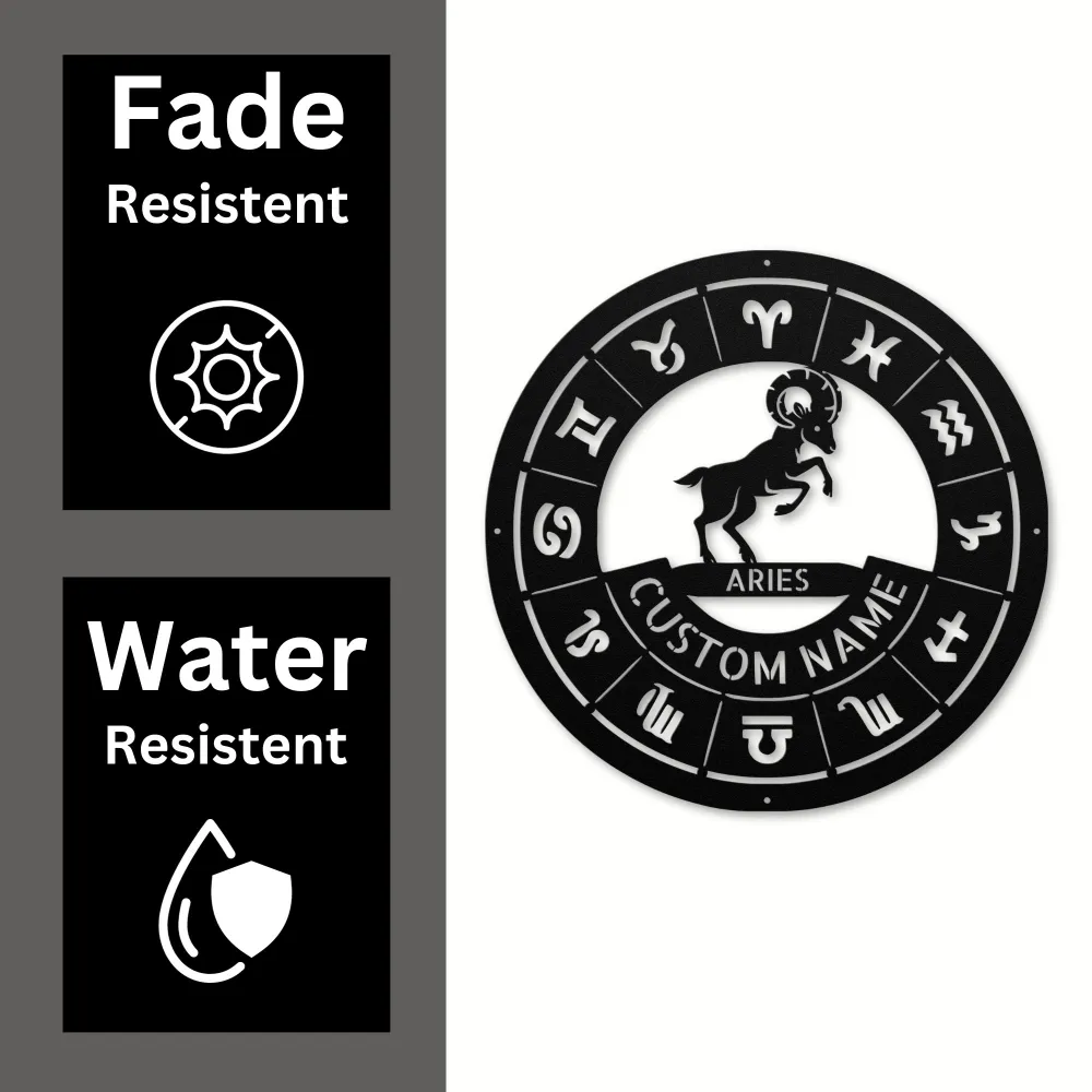 Celebrate your Aries zodiac sign with a Personalized Aries Metal Sign – durable 16-gauge metal, customizable design, powder-coated finish, and various sizes/colors.