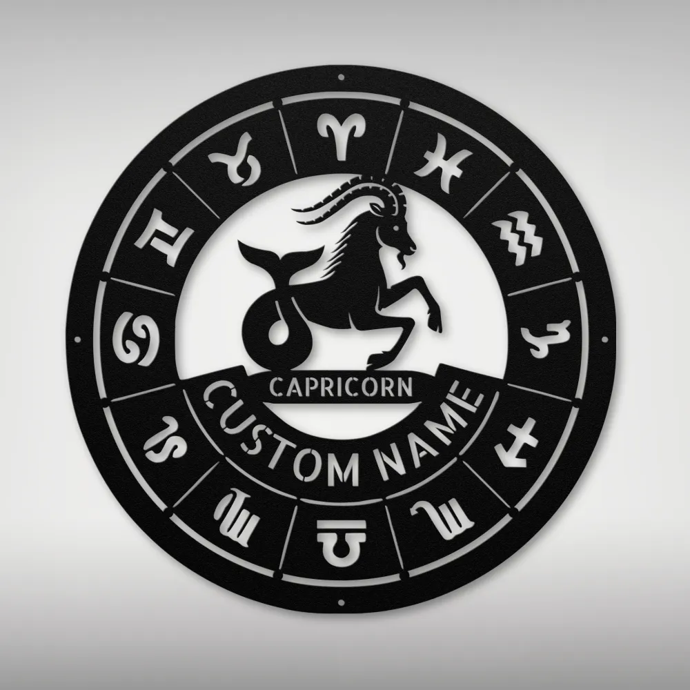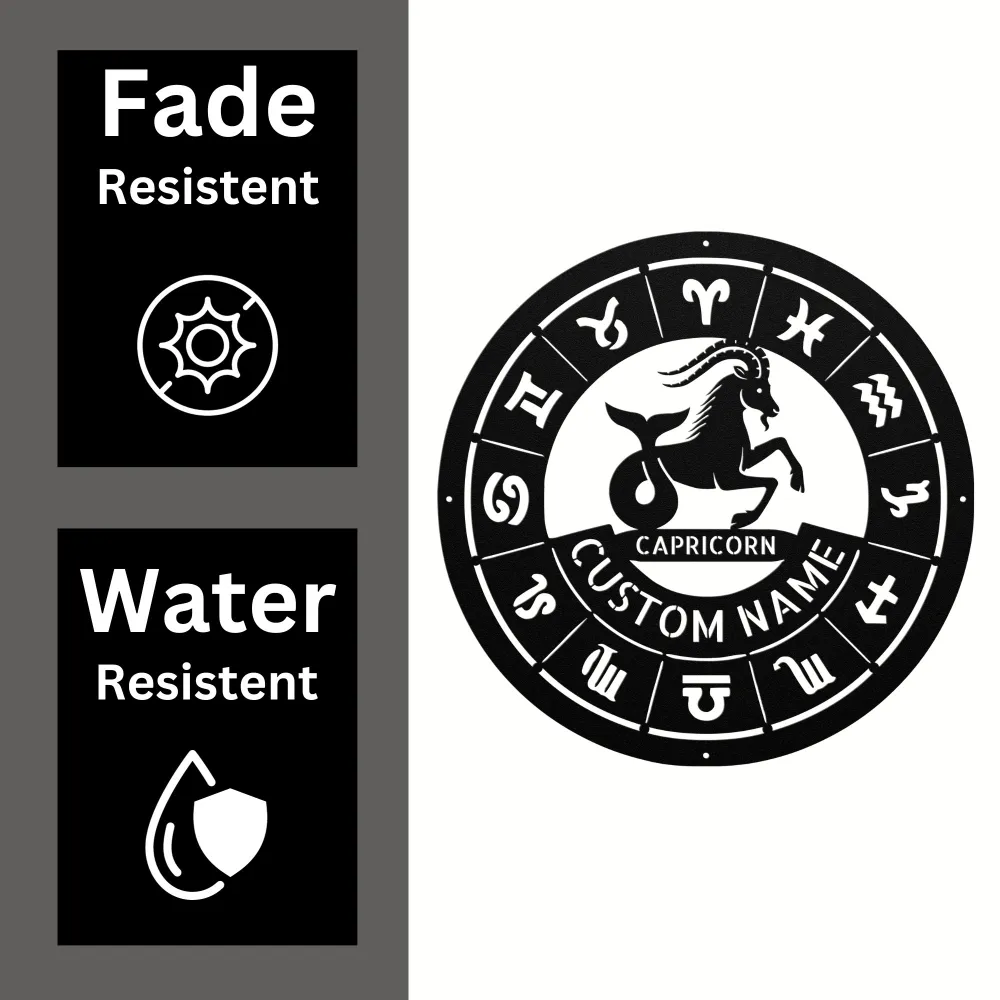 Celebrate your Capricorn zodiac sign with a Personalized Capricorn Metal Sign – durable 16-gauge metal, customizable design, powder-coated finish, and various sizes/colors.