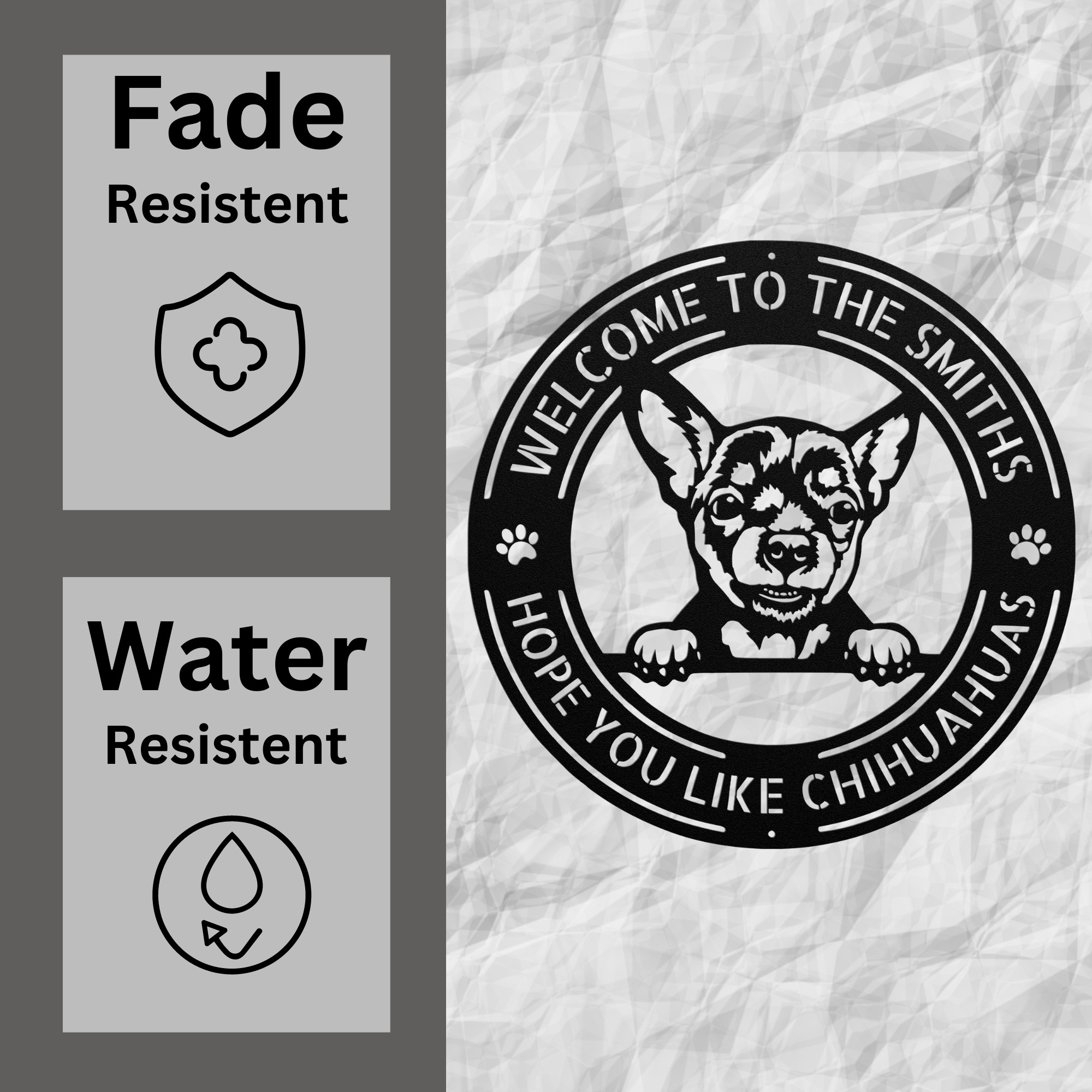 Personalized Chihuahua Dog Metal Sign πΆβ¨ Made from 16 gauge metal with a powder-coated finish. Customize with names or messages. Perfect for Chihuahua lovers!
