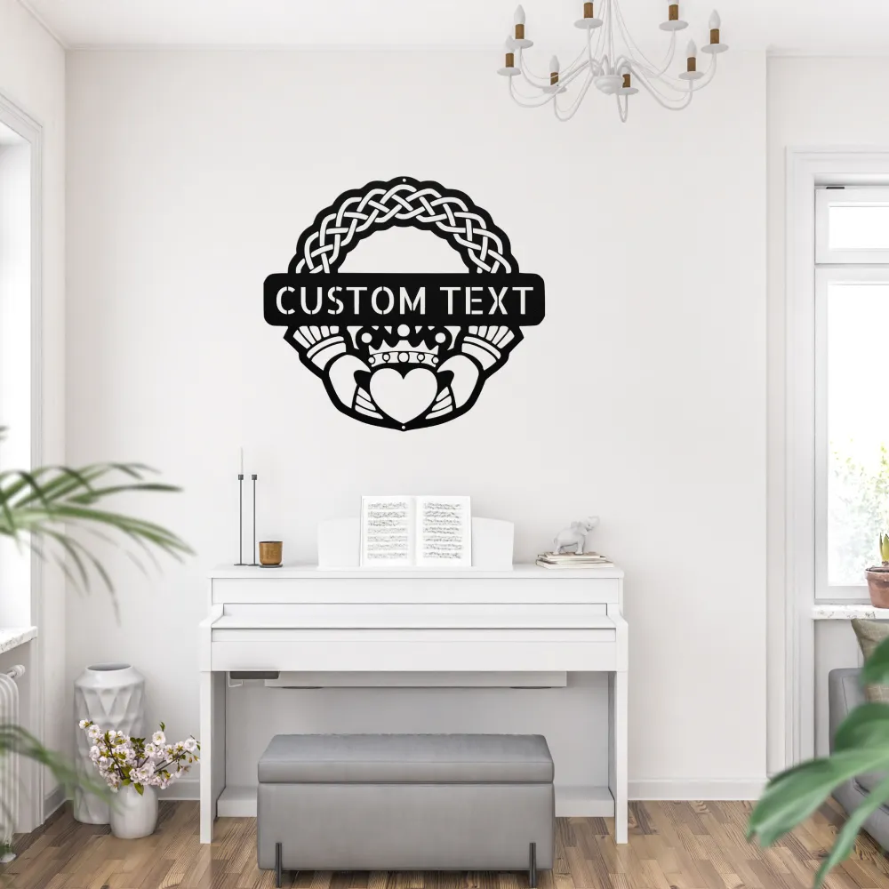 Celebrate your Irish heritage with a Personalized Claddagh Crest Metal Sign. The Claddagh design, featuring two hands holding a heart with a crown, symbolizes love, loyalty, and friendship. Customize it with your family name, initials, or a meaningful phrase to make this beautiful sign uniquely yours. Perfect for displaying at home, in your office, or as a thoughtful gift for family members or friends.