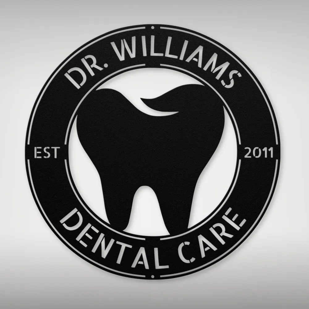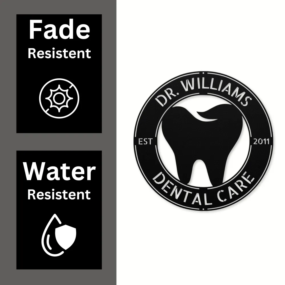 Enhance your dental practice with a Personalized Dental Metal Sign – custom design, durable 16-gauge metal, powder-coated finish, available in various sizes and colors.