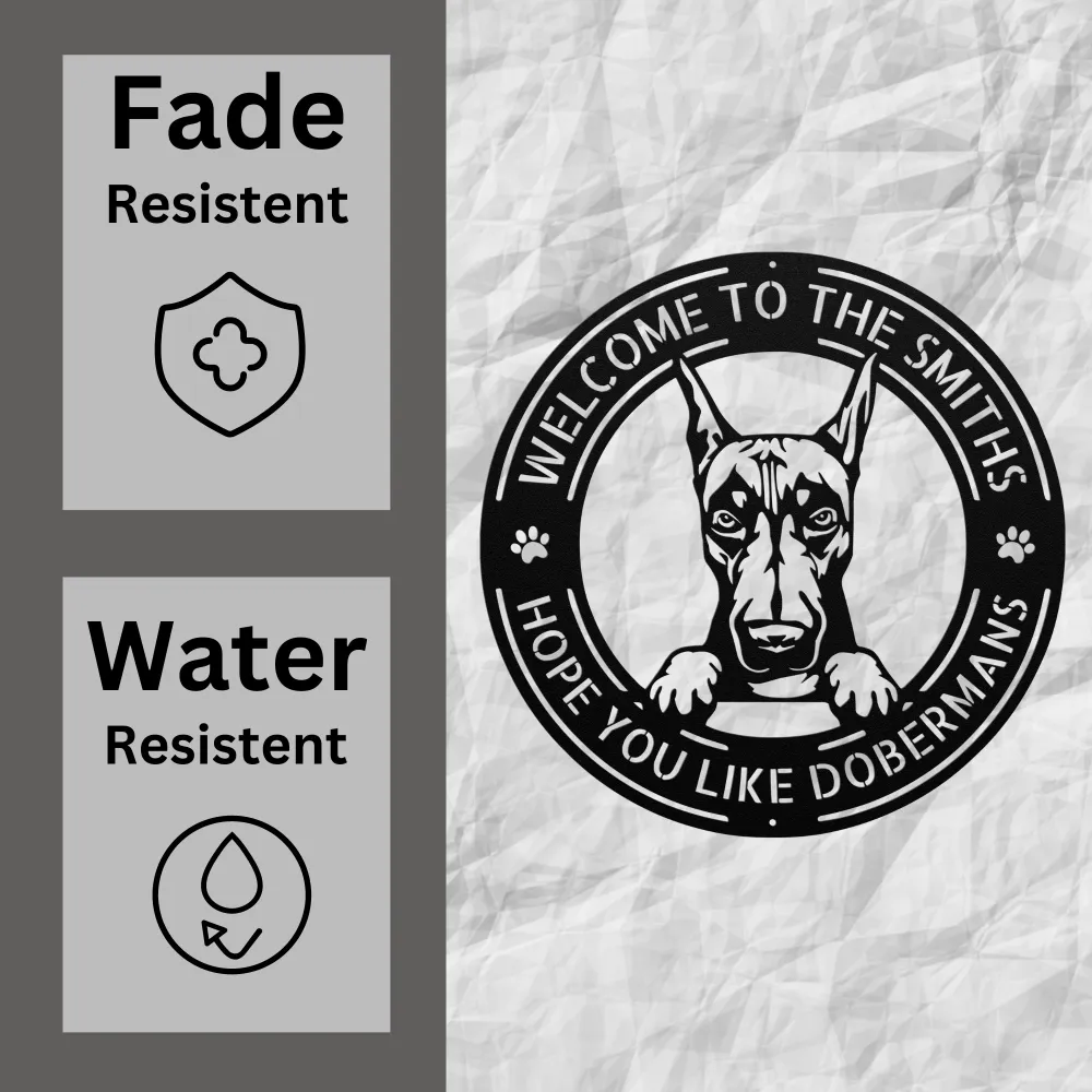 Personalized Doberman Metal Sign 🐕💪 Made from 16 gauge metal with a powder-coated finish. Customize with names or messages. Perfect for Doberman lovers!