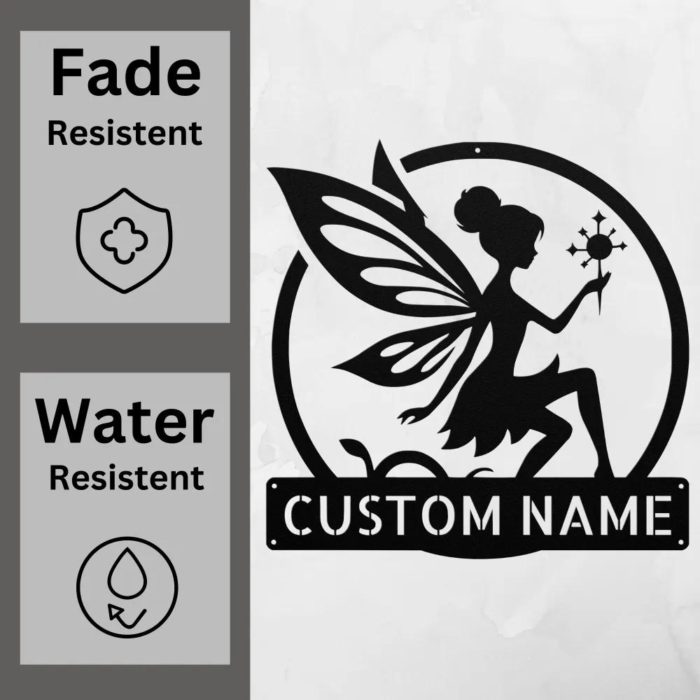 Add a magical touch with a Personalized Fairy Metal Art Sign – durable 16-gauge metal, customizable design, powder-coated finish, and various sizes/colors.
