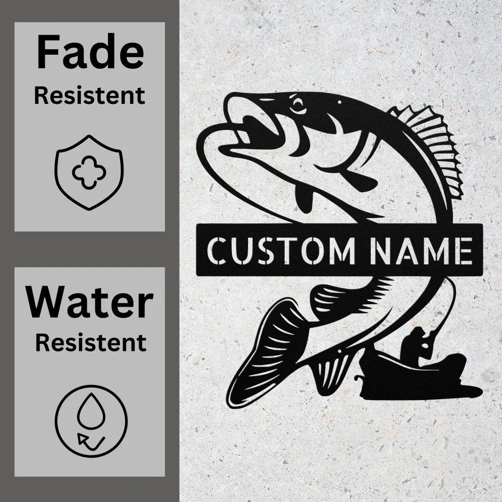 Celebrate fishing with a Custom Bass Fish Sign! Made from 16-gauge metal, powder-coated for durability, and customizable with names or fishing spots.