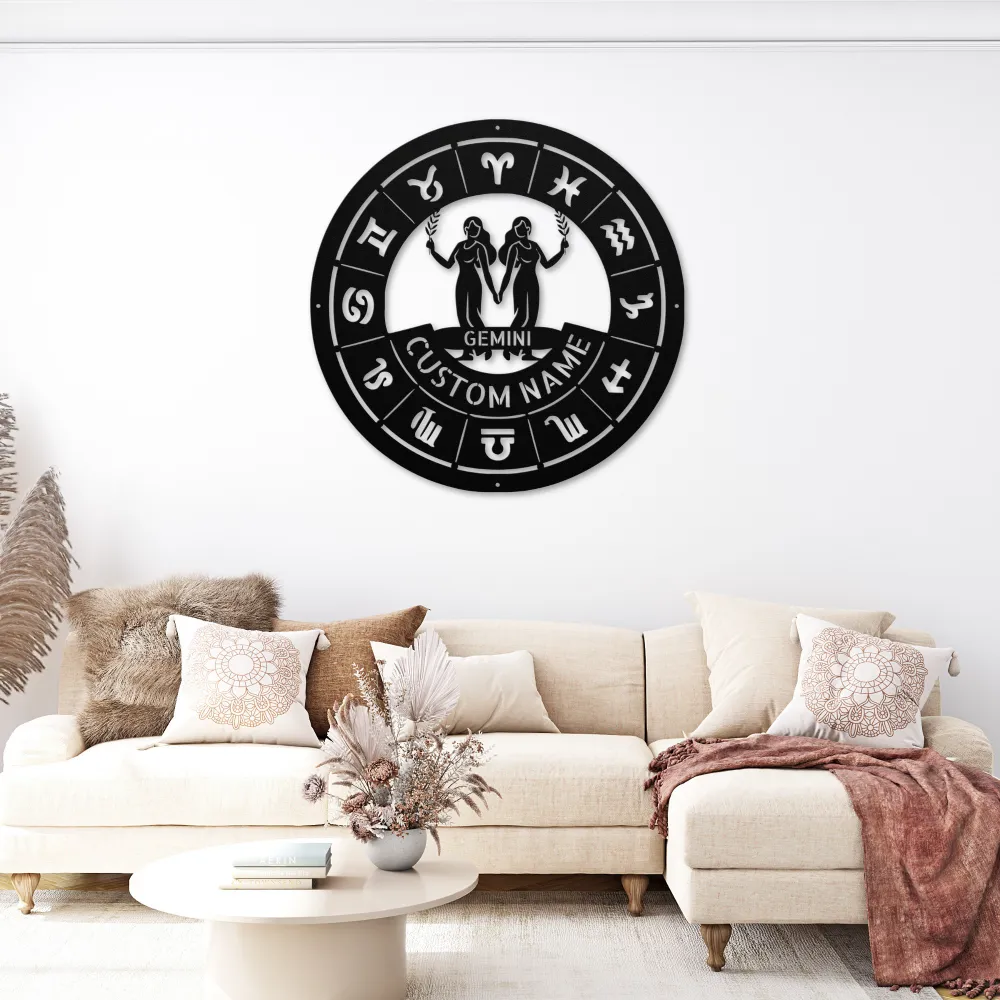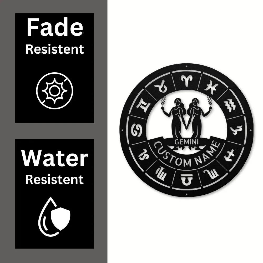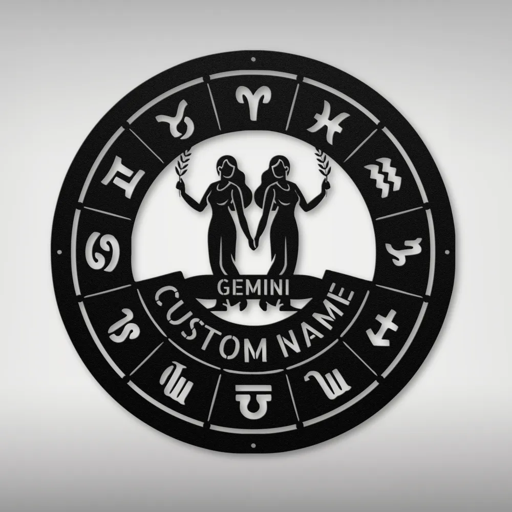 Celebrate your Gemini zodiac sign with a Personalized Gemini Metal Sign – durable 16-gauge metal, customizable design, powder-coated finish, and various sizes/colors.