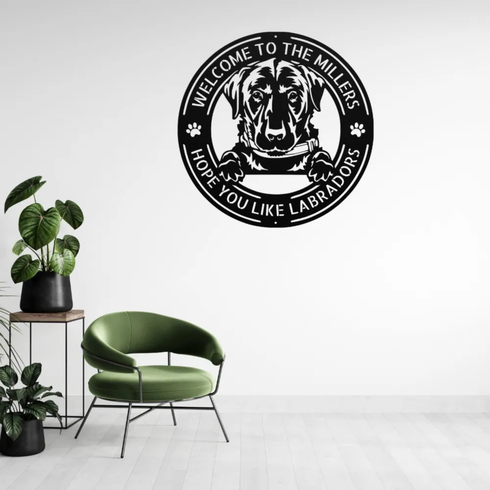 Personalized Labrador Metal Sign πΎπ Made from 16 gauge metal with a powder-coated finish. Customize with names or messages. Perfect for Labrador lovers!