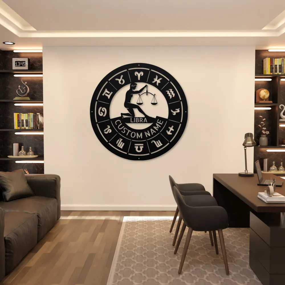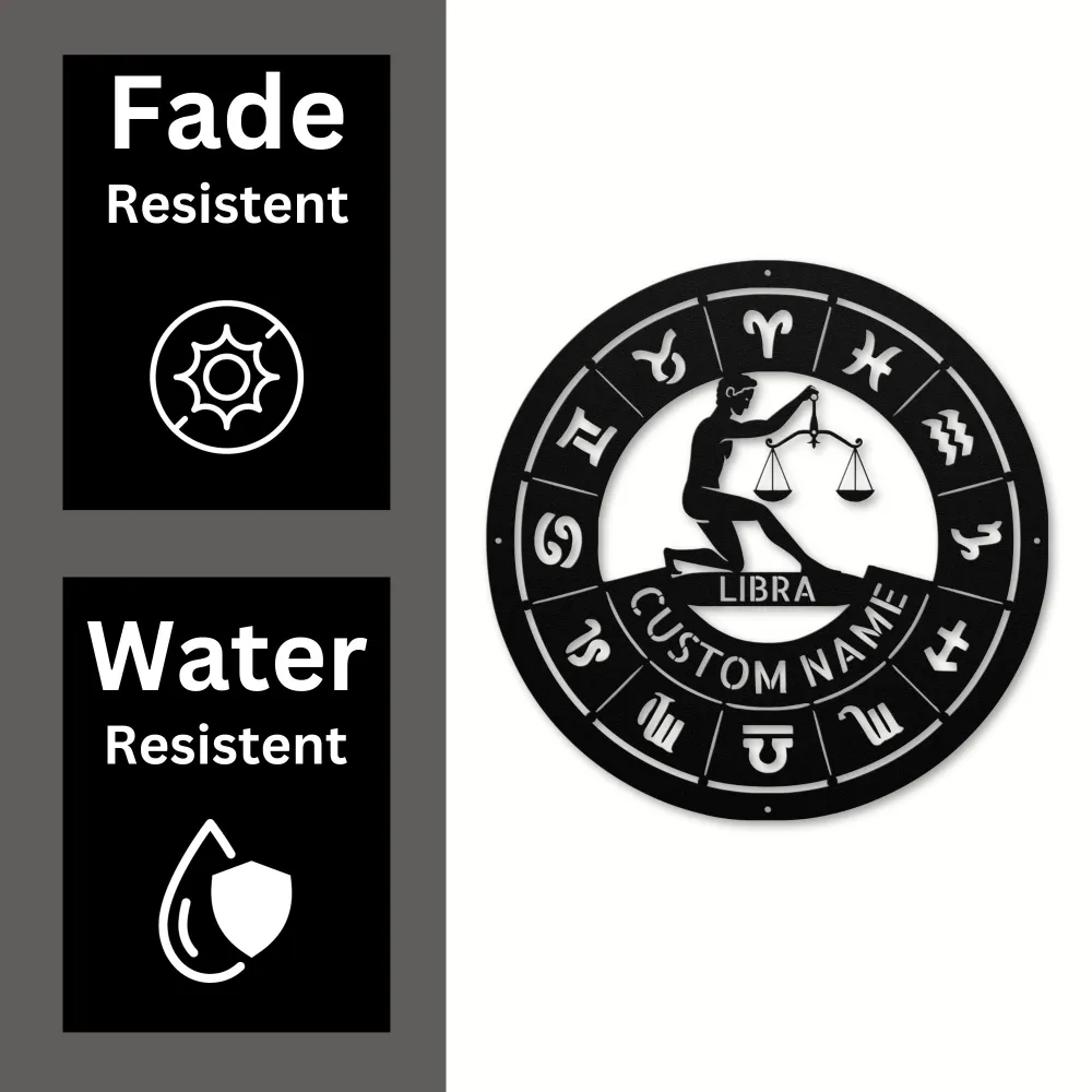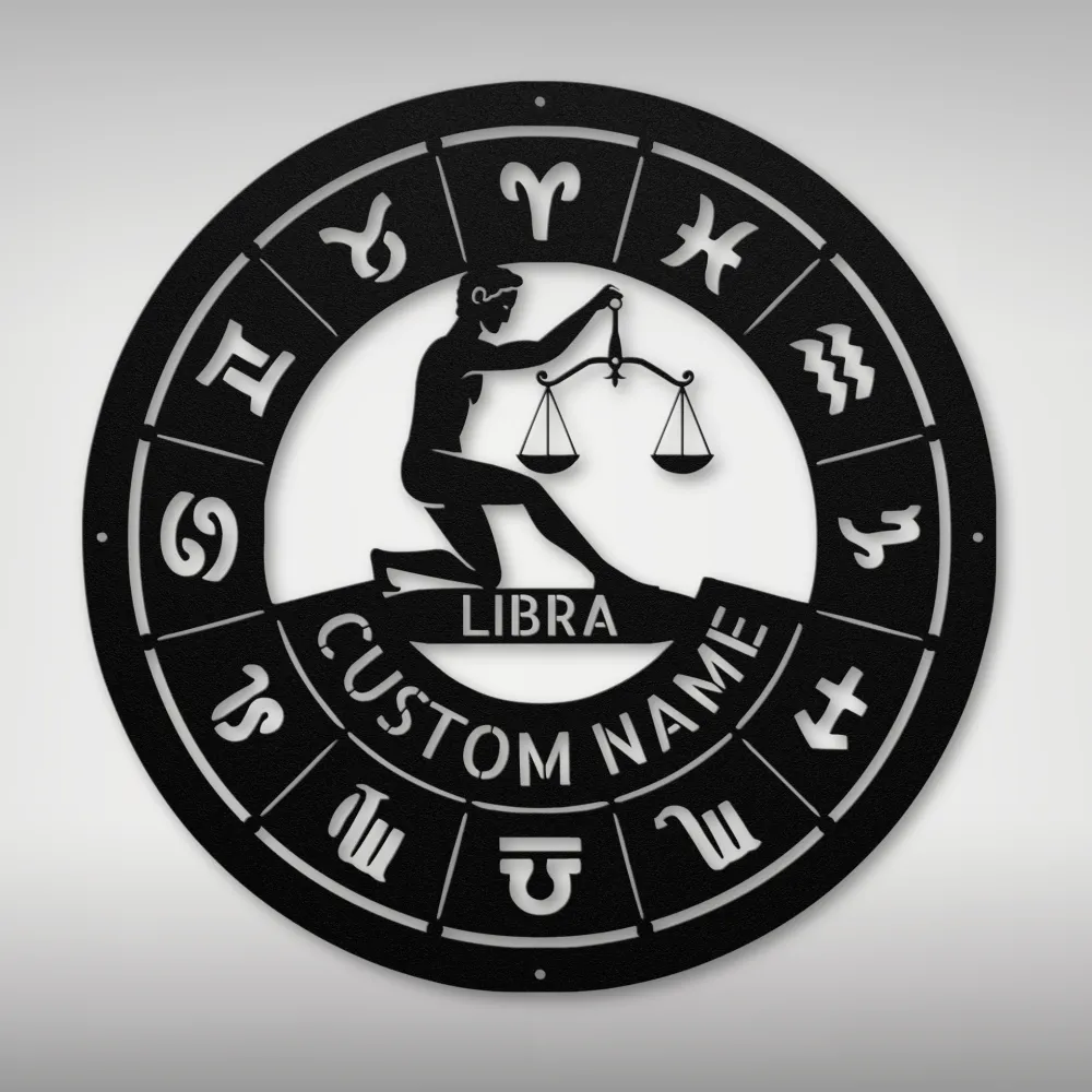 Celebrate your Libra zodiac sign with a Personalized Libra Metal Sign – durable 16-gauge metal, customizable design, powder-coated finish, and various sizes/colors.
