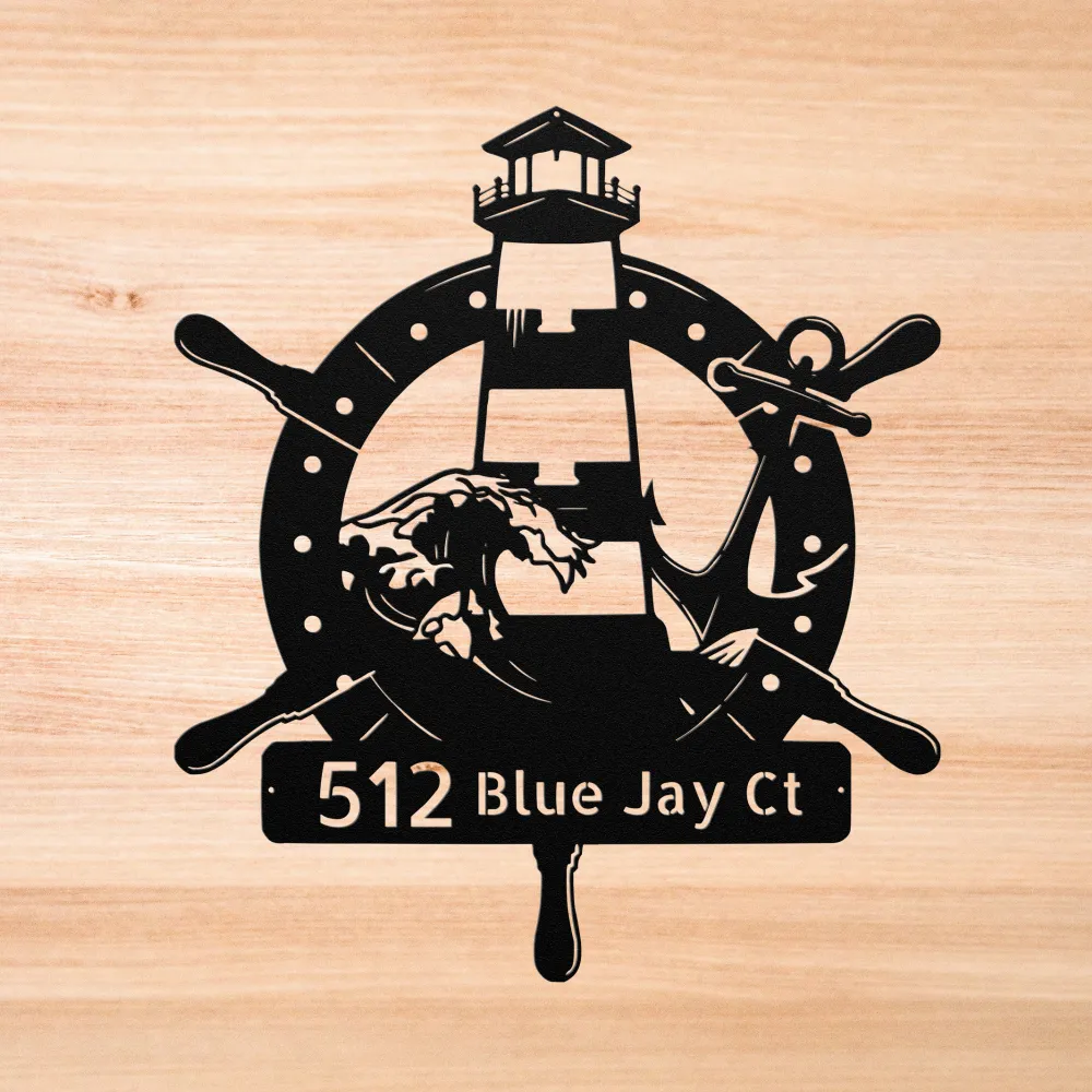 Enhance your space with a Personalized Lighthouse Metal Sign – durable 16-gauge metal, customizable design, powder-coated finish, and various sizes/colors.
