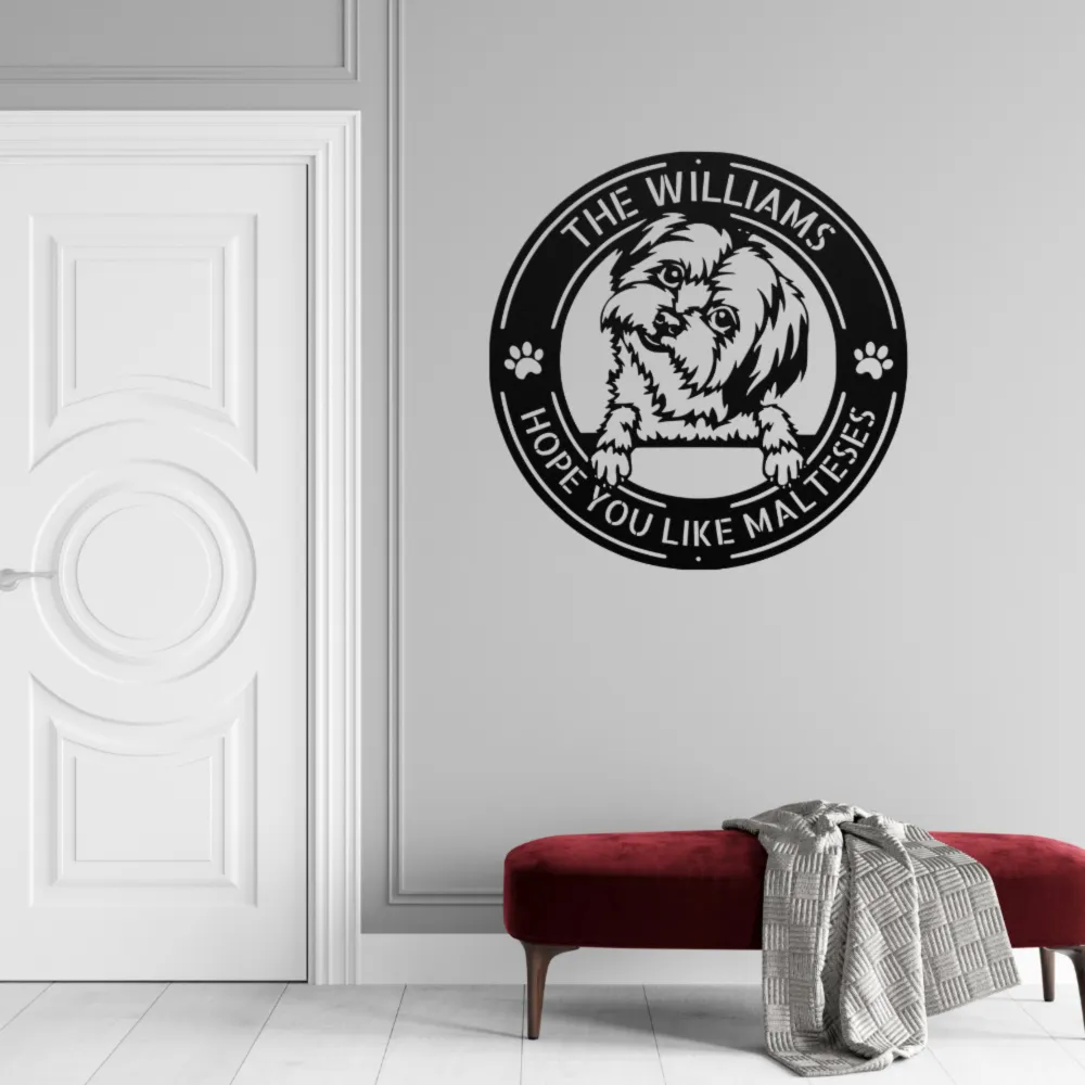 Personalized Maltese Dog Metal Sign πΎπ Made from 16 gauge metal with a powder-coated finish. Customize with names or messages. Perfect for Maltese lovers!