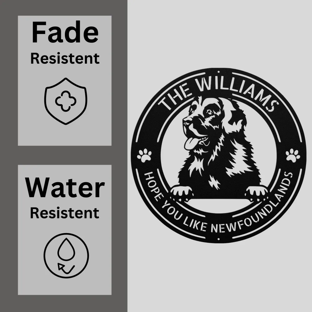 Personalized Newfoundland Dog Metal Sign πΎπ Made from 16 gauge metal with a powder-coated finish. Customize with names or messages. Perfect for Newfoundland lovers!