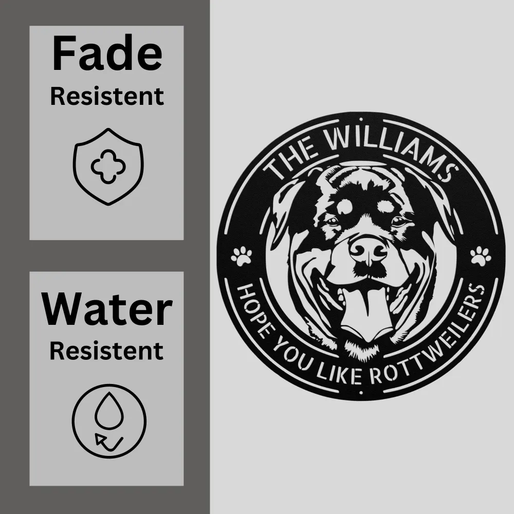 Personalized Rottweiler Dog Metal Sign πΎπͺ Made from 16 gauge metal with a powder-coated finish. Customize with names or messages. Perfect for Rottweiler lovers!