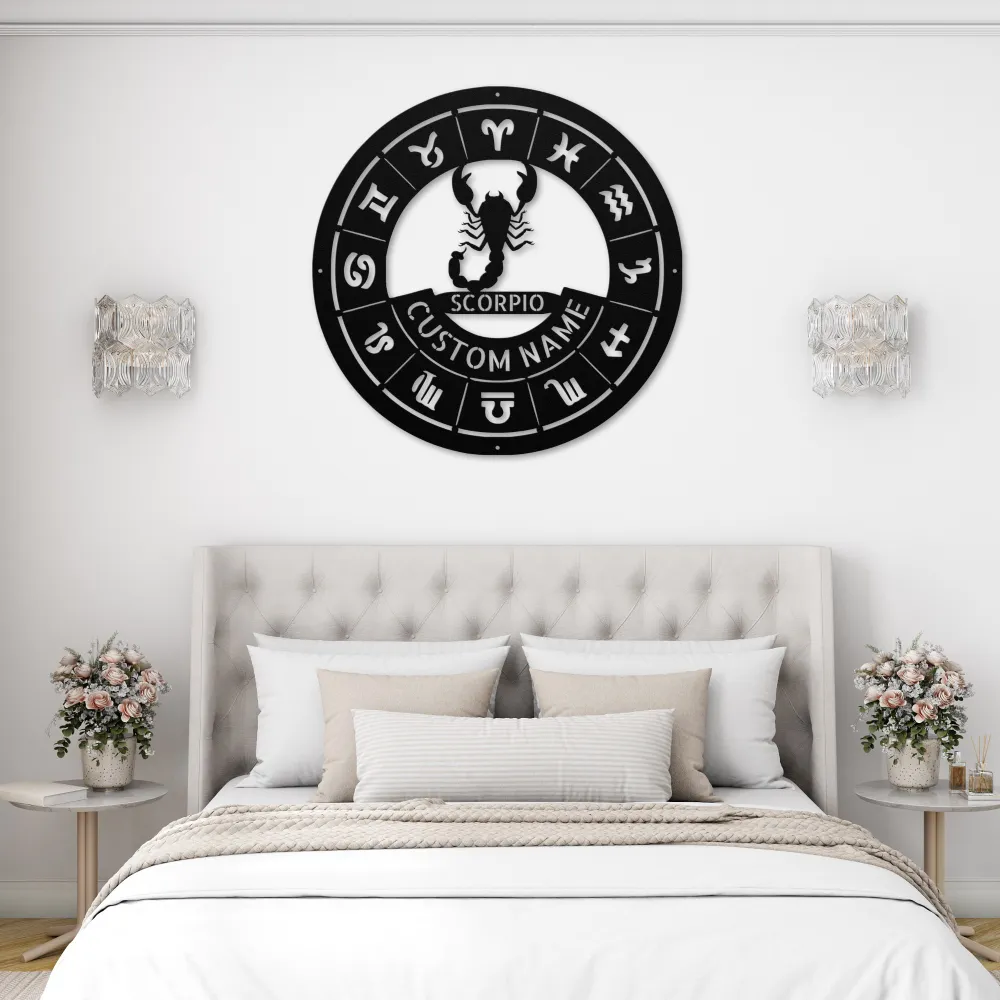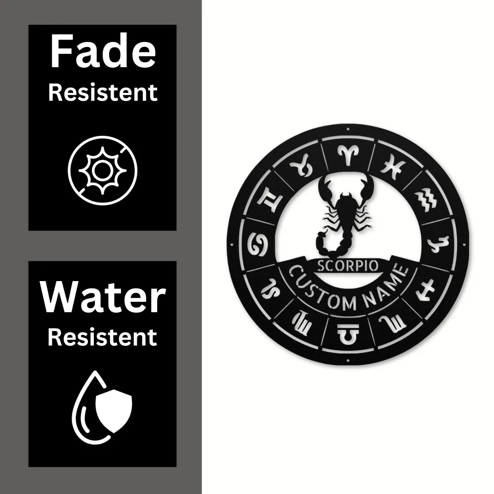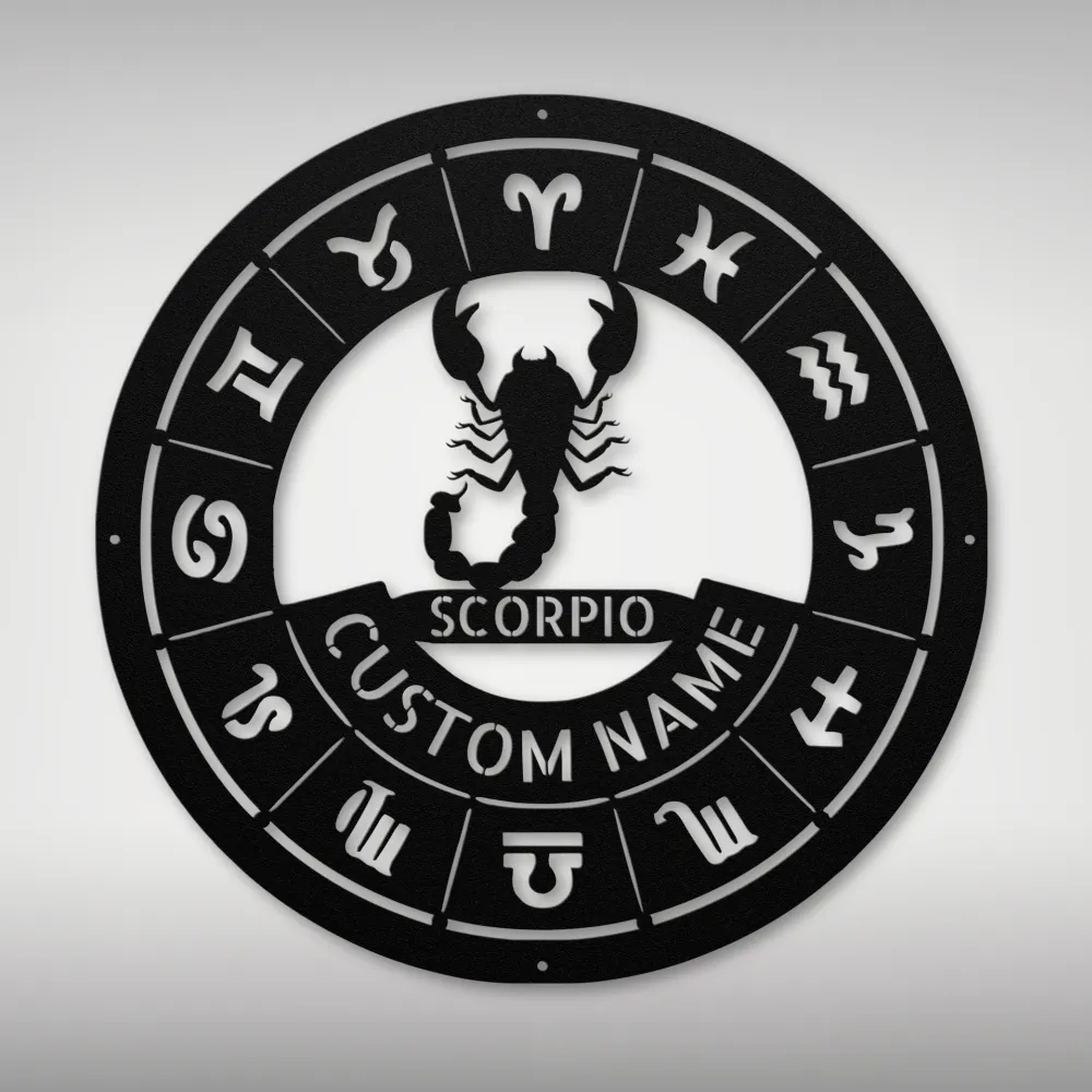 Celebrate your Scorpio zodiac sign with a Personalized Scorpio Metal Sign – durable 16-gauge metal, customizable design, powder-coated finish, and various sizes/colors.