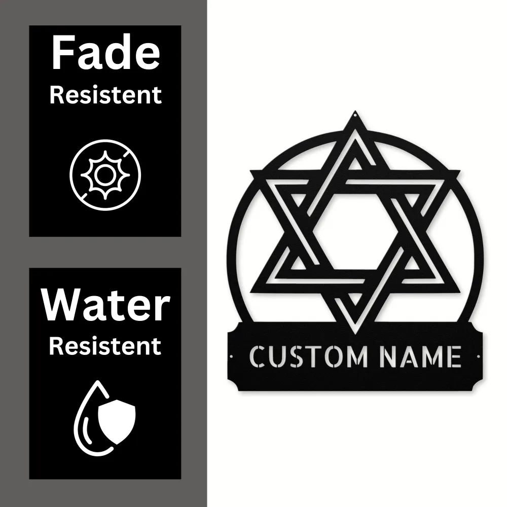Honor Jewish heritage with a Personalized Star of David Metal Sign. Customize with names or messages for a meaningful addition to your home or sacred space.