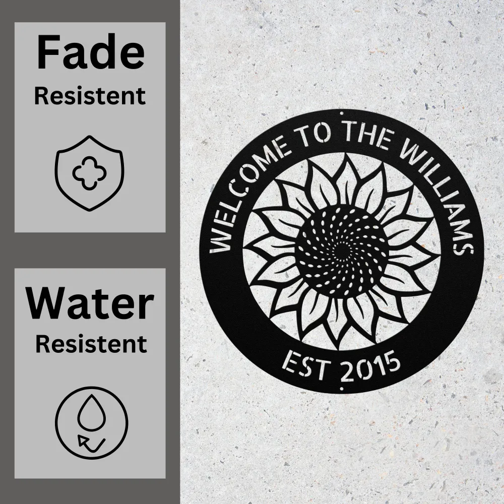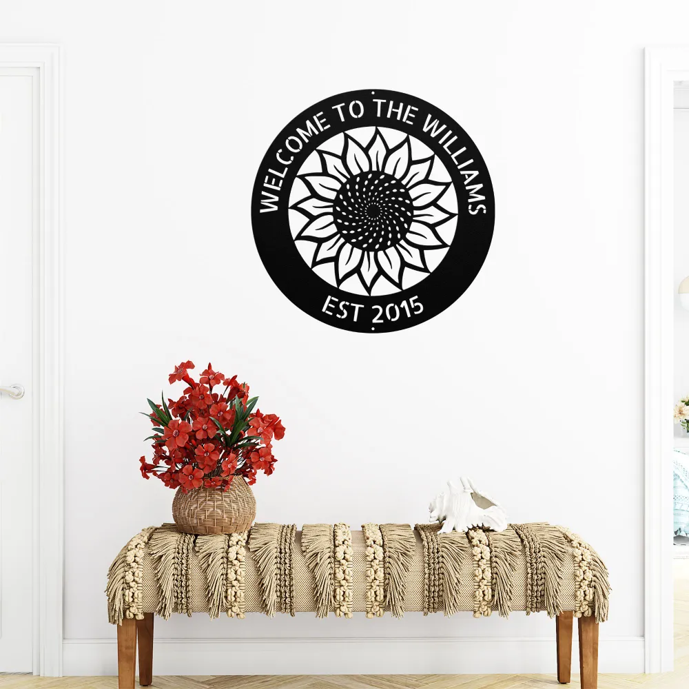Add a personal touch to your home with a Personalized Sunflower Metal Art Sign – durable 16-gauge metal, customizable design, powder-coated finish, and various sizes/colors.