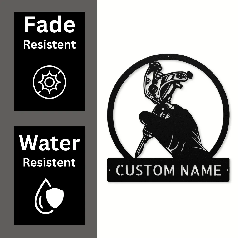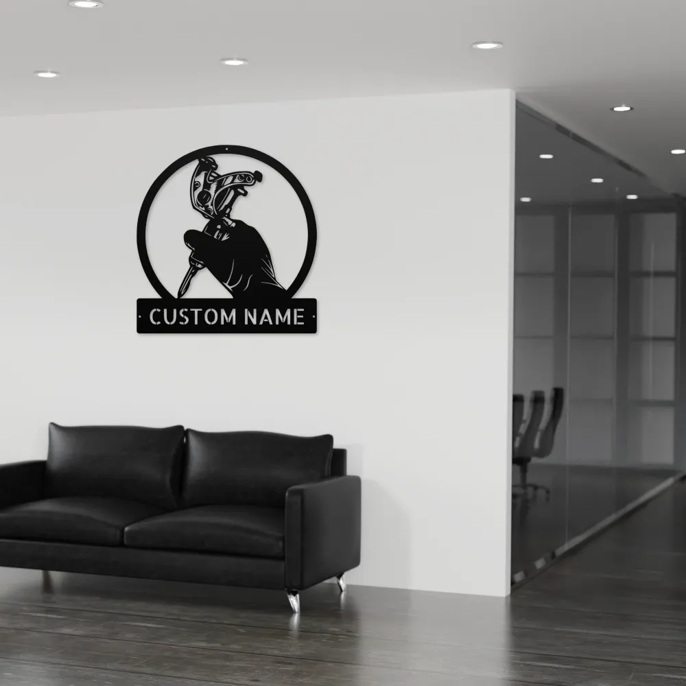 Personalized Tattoo Metal Art Sign for ink lovers. Personalize with a name or shop name. Durable steel, weather-resistant, perfect for tattoo studios & décor!