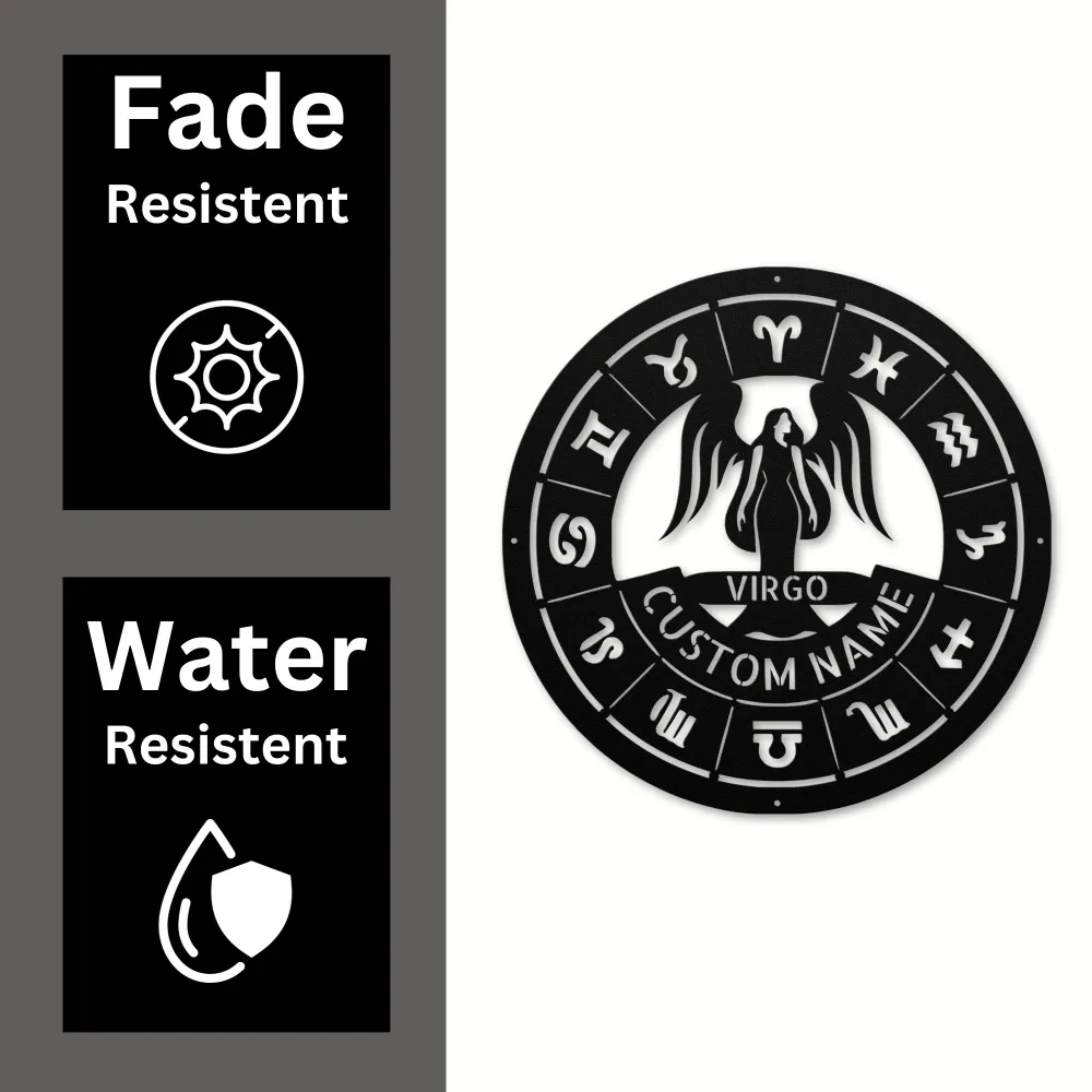 Celebrate your Virgo zodiac sign with a Personalized Virgo Metal Sign – durable 16-gauge metal, customizable design, powder-coated finish, and various sizes/colors.