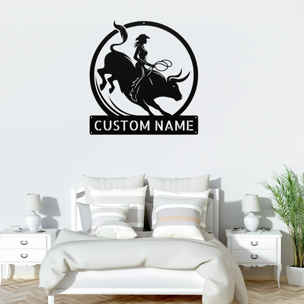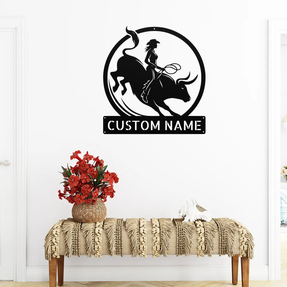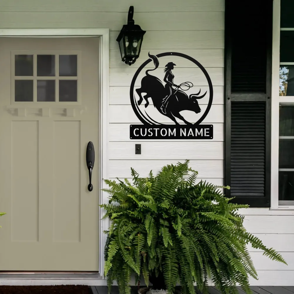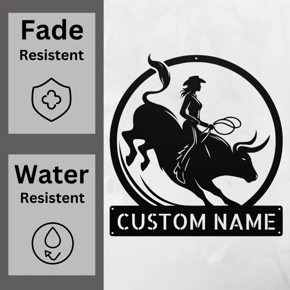 Order your Personalized Woman Bull Rider Metal Sign today and celebrate the spirit of rodeo in your home or barn!